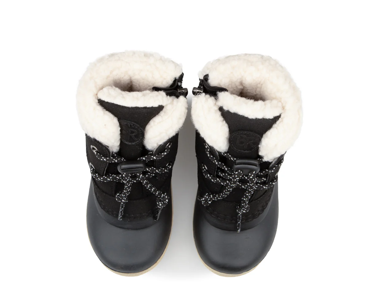 Bottillon pour enfants conçu pour affronter le froid et l’humidité. Sa tige en nylon et cuir synthétique bénéficie d’un traitement imperméable pour garder les pieds secs. Facile à enfiler grâce à la fermeture éclair intérieure et aux lacets élastiques avec togo pour un ajustement sécurisé. La doublure en sherpa offre chaleur et confort, tandis que la semelle extérieure en TPR assure adhérence et durabilité sur toutes les surfaces.