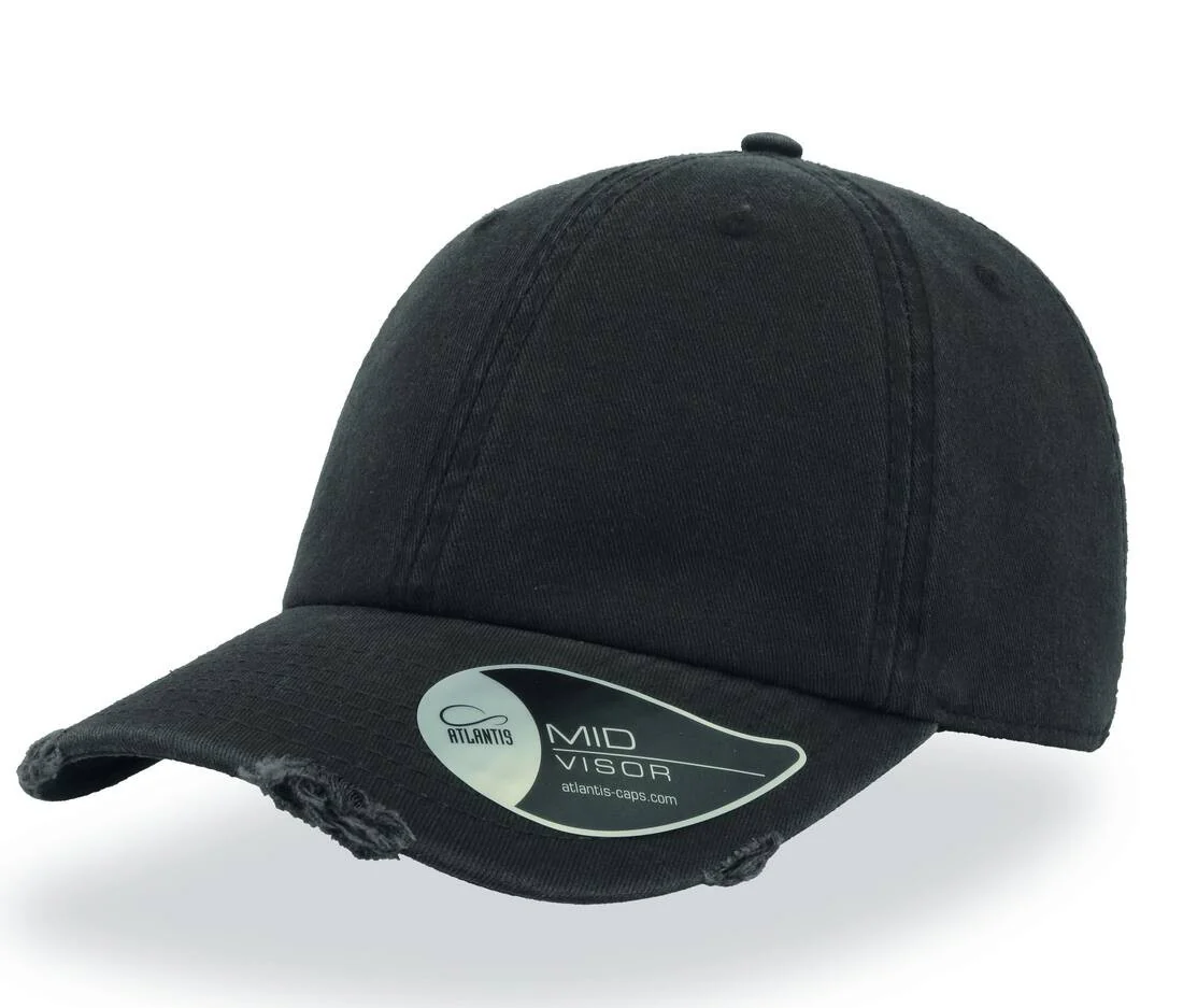6 panneaux. Œillets surpiqués. Panneaux structurés. Fermeture par boucle. Coutures décoratives sur la visière. Visière préformée. Effet vieilli.