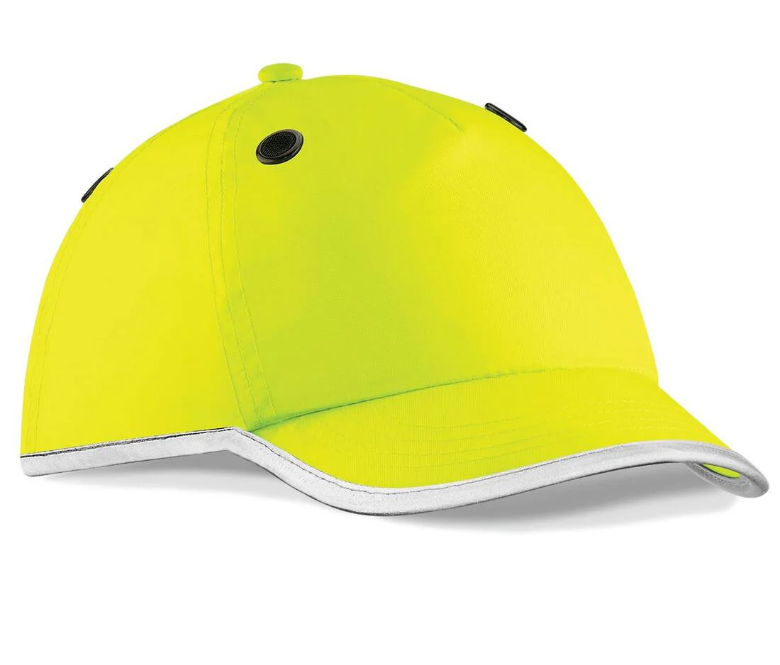 Bande de sudation 100% Coolmax. Coque intérieure amovible en polycarbonate. Conforme à la norme EN812. Oeillets d’aération. Casquette haute visibilité. Parfait pour la sérigraphie et la broderie.