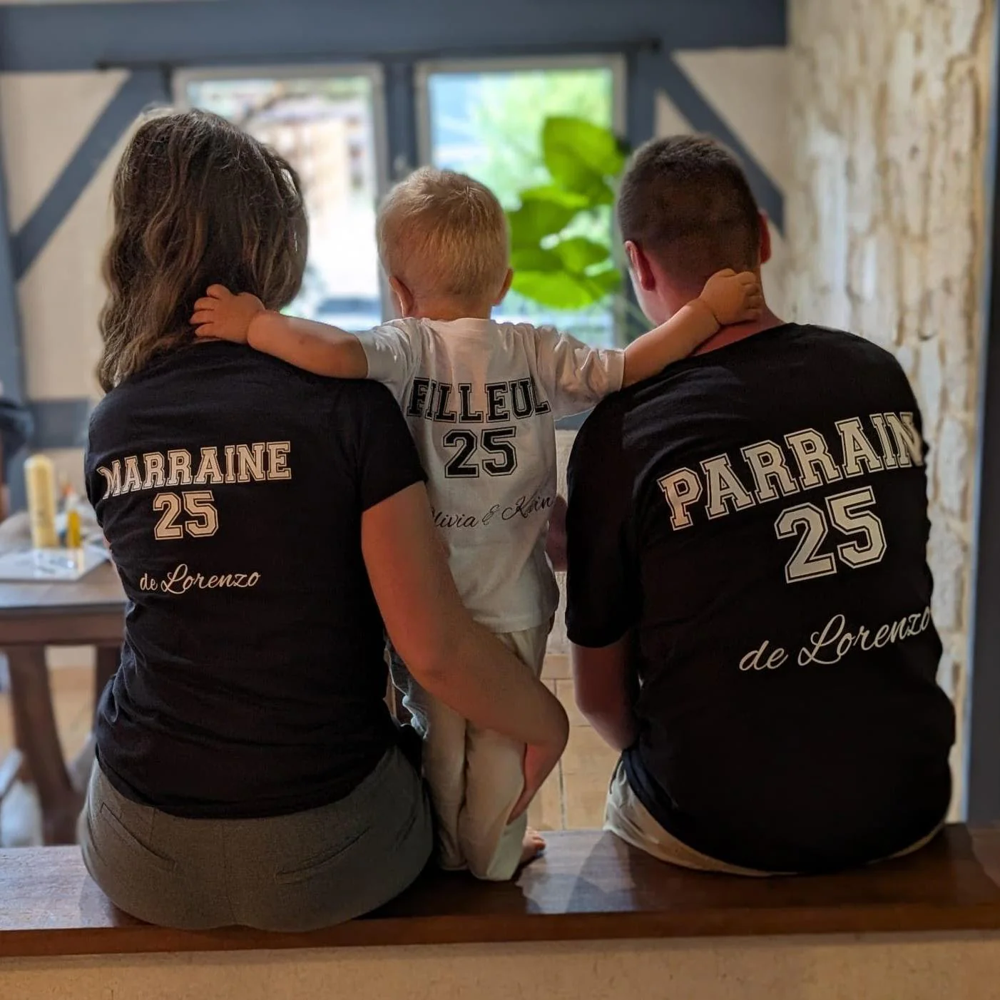 Avec un chiffre personnalisé, ces t-shirts uniques célèbrent votre rôle important dans la vie de votre filleul(e).
