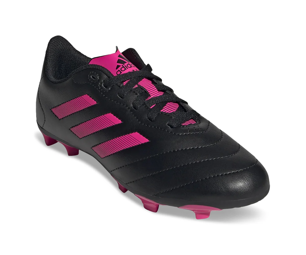 Cette chaussure de soccer d’adidas, noir avec touches roses, la Goletto VIII, est dotée d’une nouvelle tige en matière synthétique, d’une amélioration du contrôle à l’avant du pied et d’un rembourrage confortable au niveau des talons. Une adhérence parfaite sur terrain gazonné pour mettre en valeur votre talent est assurée par la semelle extérieure résistante.