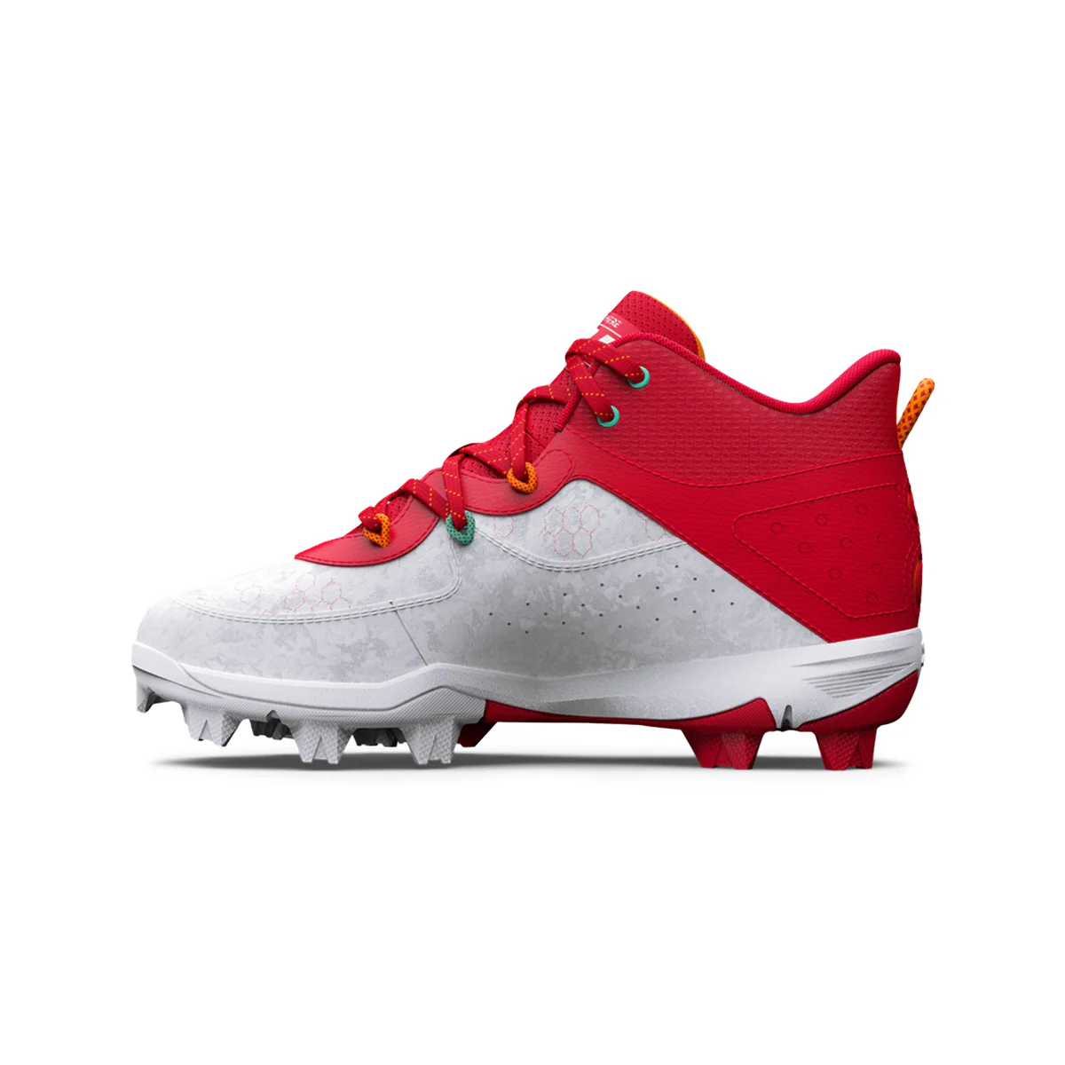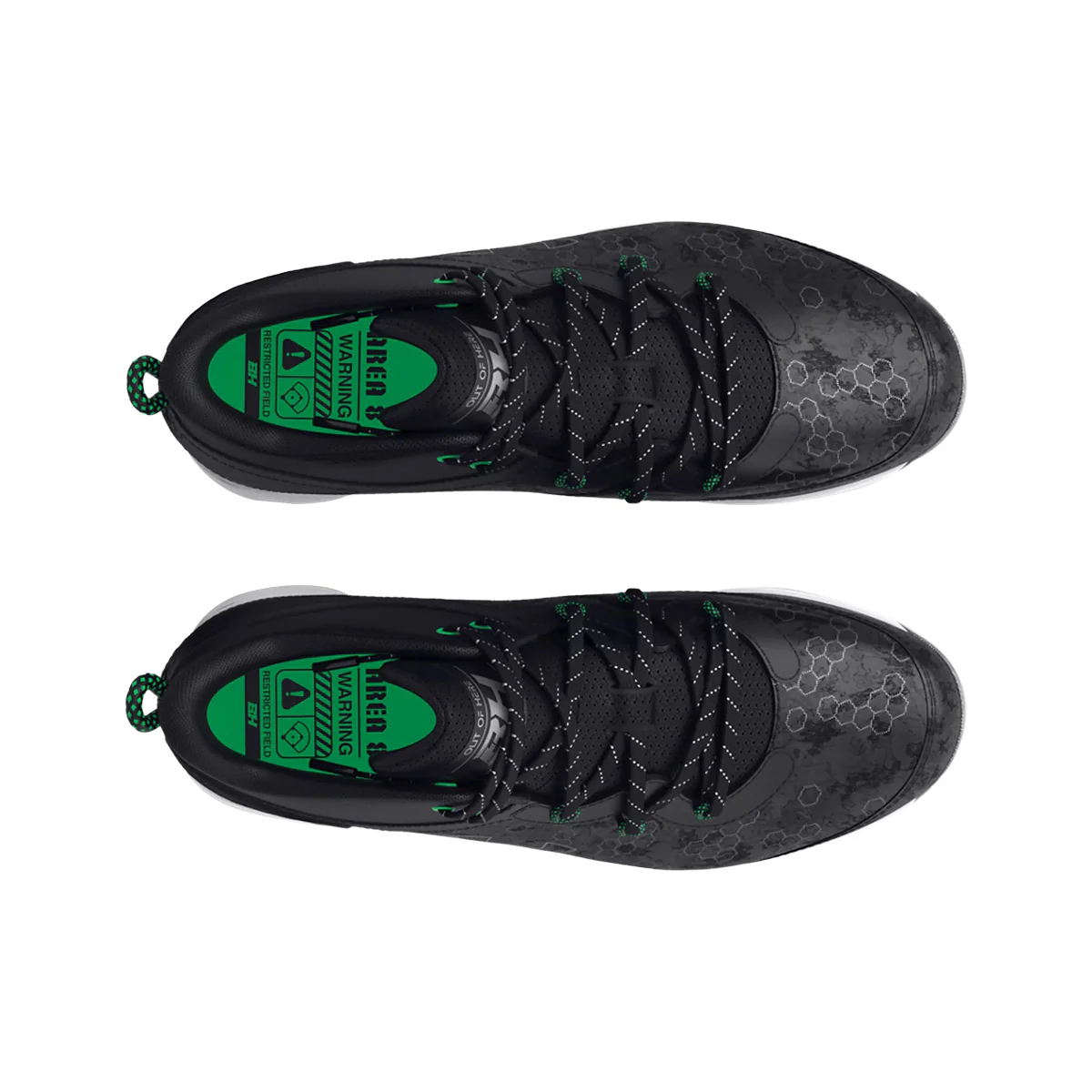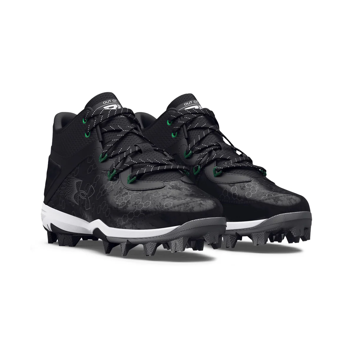 Chaussures de baseball à crampons Harper pour enfants de marque Under Armour. Tige en filet synthétique légère, durable et très respirante, système de lacets interne en TPU qui immobilise le pied, semelle intercalaire pleine longueur en EVA qui offre plus de coussinage et de confort sous les pieds, crampons moulés en caoutchouc. Offertes dans le noir.