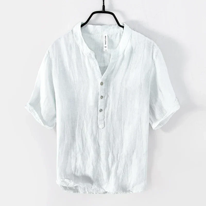 Découvrez la chemise Joren, un symbole de légèreté raffinée. Cette chemise en lin à manches courtes apporte une touche d’élégance intemporelle à votre garde-robe estivale. Fabriquée en pur lin, elle offre des propriétés respirantes supérieures et une sensation naturellement douce qui vous garde au frais et à l’aise lors des journées chaudes. Le col montant moderne et la fermeture à demi-boutons ajoutent une touche de style contemporain, en faisant un vêtement polyvalent pour différentes occasions.