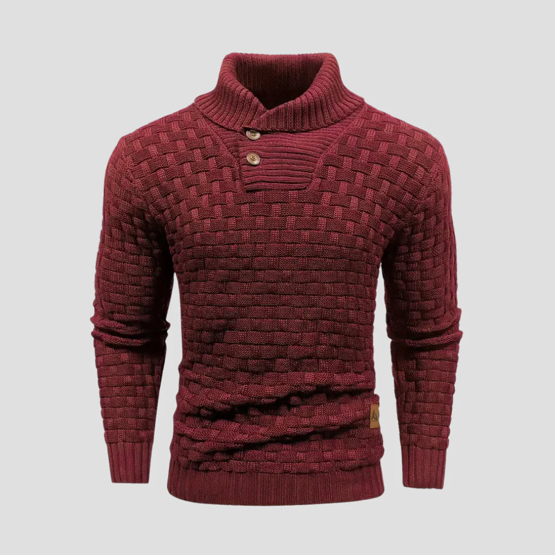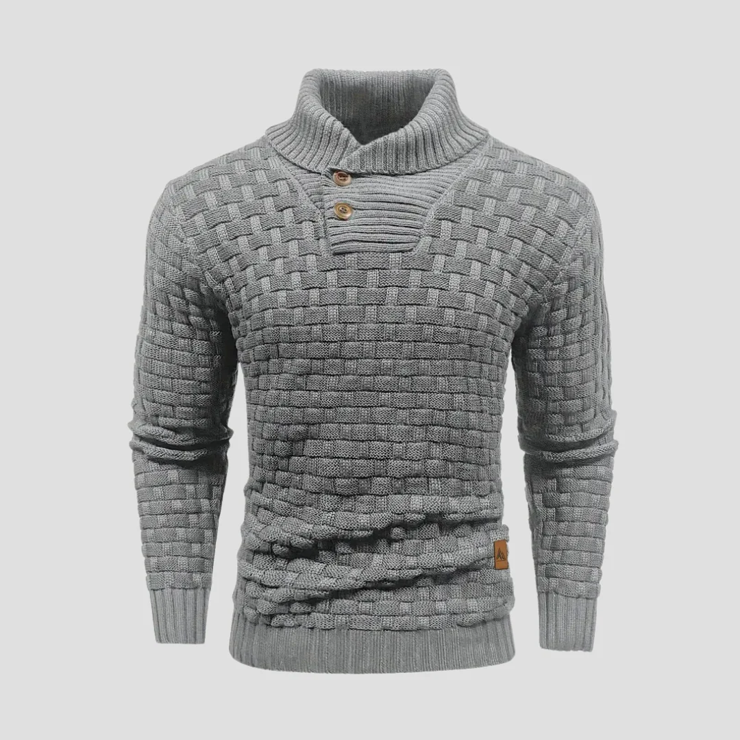 Ce pull élégant pour homme est fabriqué à partir d’un tissu tricoté chaud avec une structure gaufre unique. Le col haut avec deux boutons donne au pull un look robuste, mais tout de même élégant.