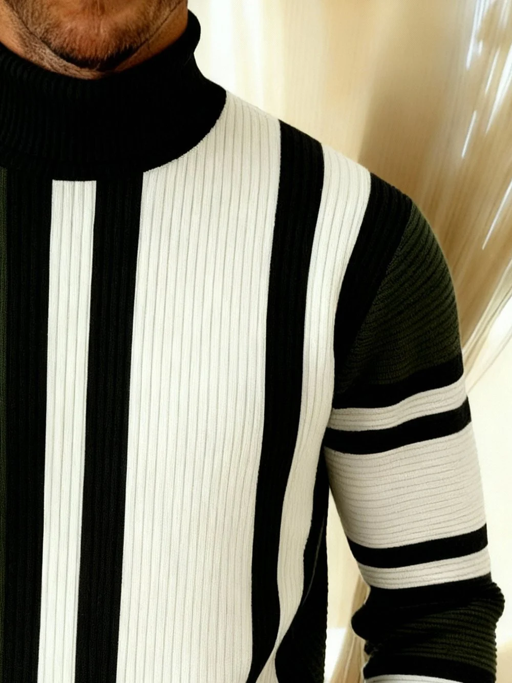 MAISON CLÉMENT PARIS™ | PULL HOMME COL ROULÉ RAYÉ CÔTELÉ