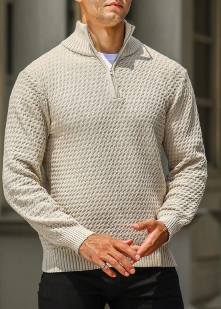 Riviera – Pull Homme à Demi-Zip – Pull Tricoté Moderne avec Structure
