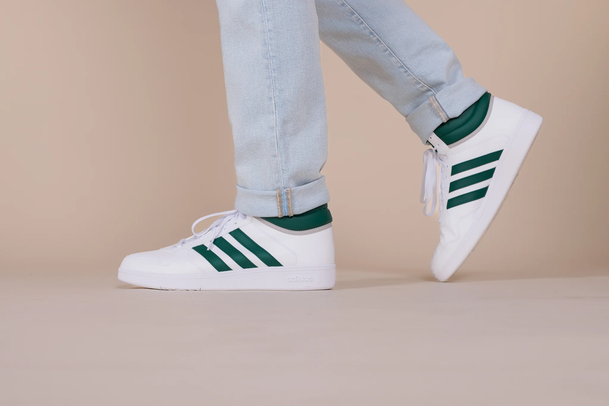 Les souliers Adidas Hoops 4.0 Mid combinent style sportif et confort quotidien. Dotés d’une tige en cuir synthétique, ils offrent un soutien robuste et une facilité d’entretien. La semelle intermédiaire en EVA procure un amorti léger pour une utilisation prolongée, tandis que leur design mi-haut assure un maintien accru et un look moderne qui s’adapte aussi bien au terrain qu’à la ville.