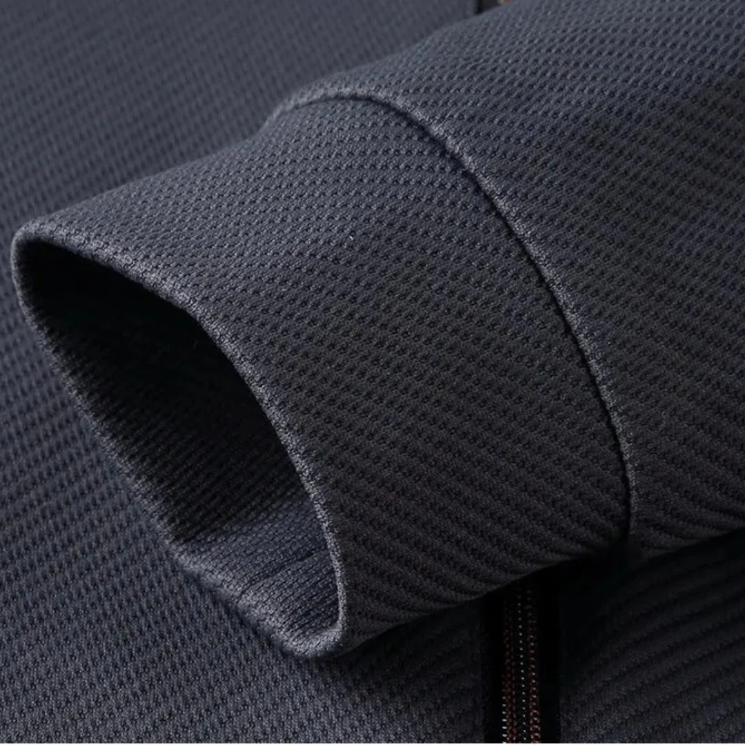 Dit trainingspak is vervaardigd uit premium polyestervezels en heeft een ongelooflijk zachte textuur die heerlijk aanvoelt op de huid. De stevige, dichte breistructuur zorgt voor duurzaamheid, waardoor je jarenlang kunt genieten van comfort en stijl.