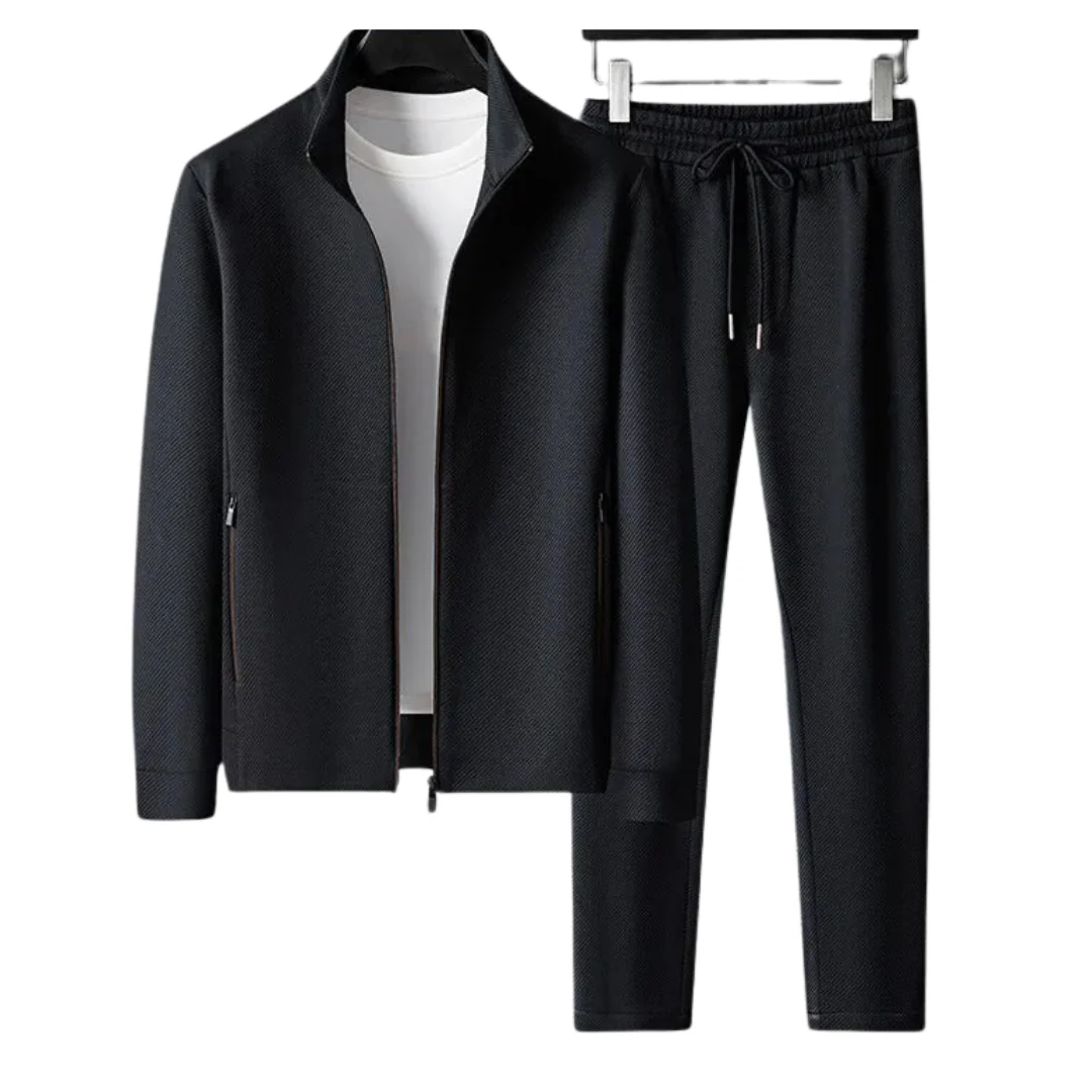« Gemaakt van het beste, hoogwaardige polyester, is dit trainingspak de belichaming van luxe en comfort. »