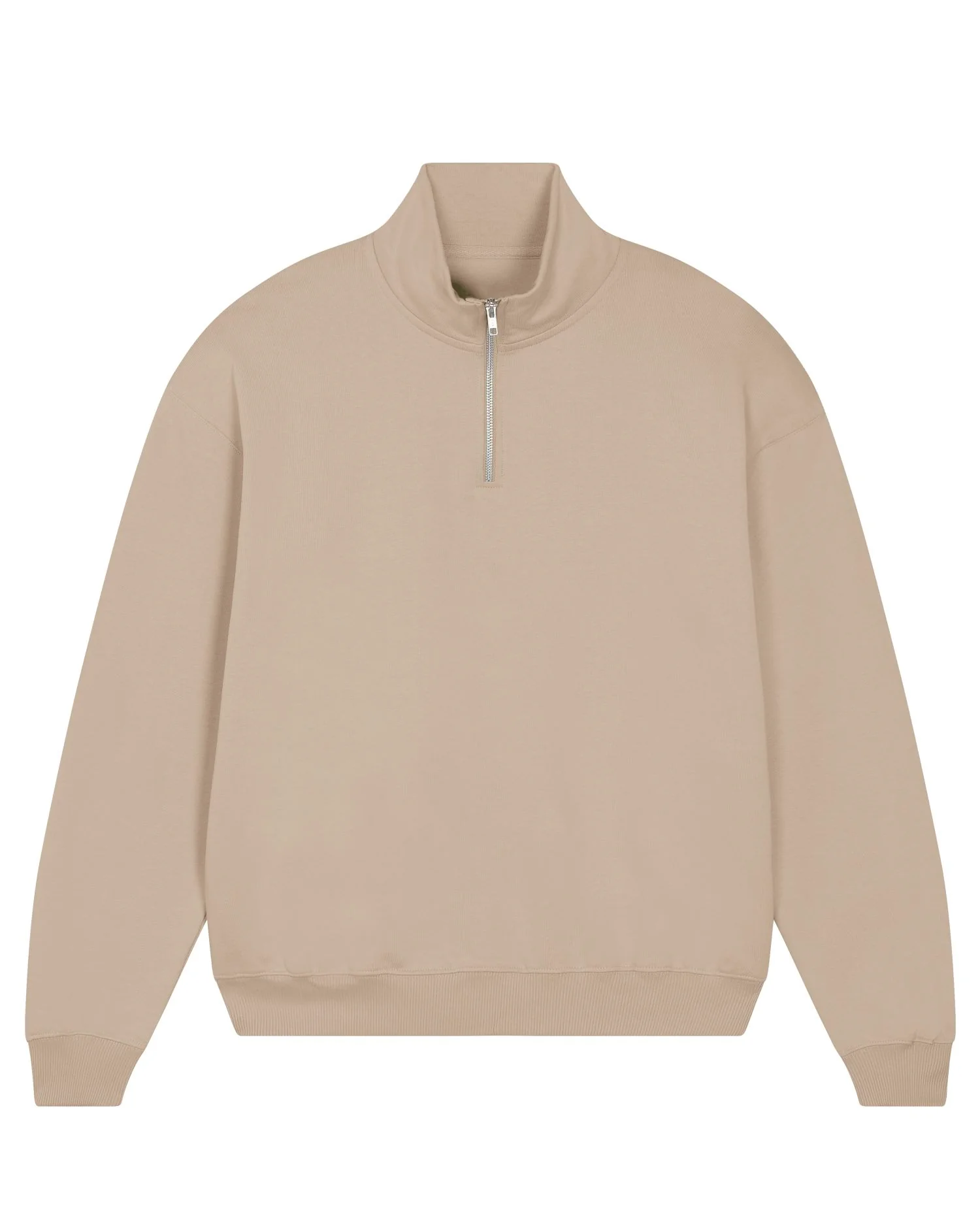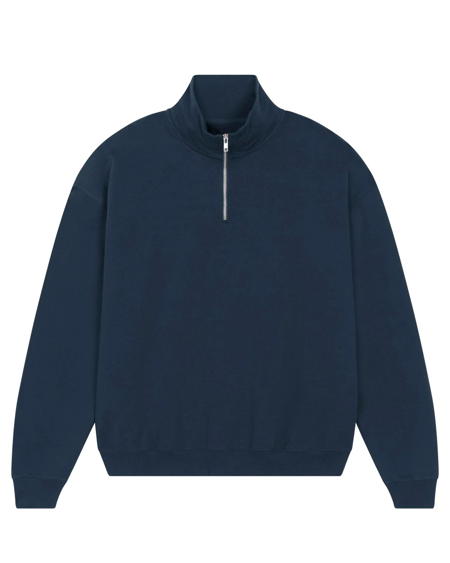 Manches montées Col dans la matière principale Ruban à chevrons à l’intérieur du col et à l’intérieur de la fermeture éclair Fermeture éclair sur un quart centrée à l’avant Bord en côtes 2×1 au bas des manches et bas du corps Surpiqûre double aux emmanchures, bas des manches et bas du corps