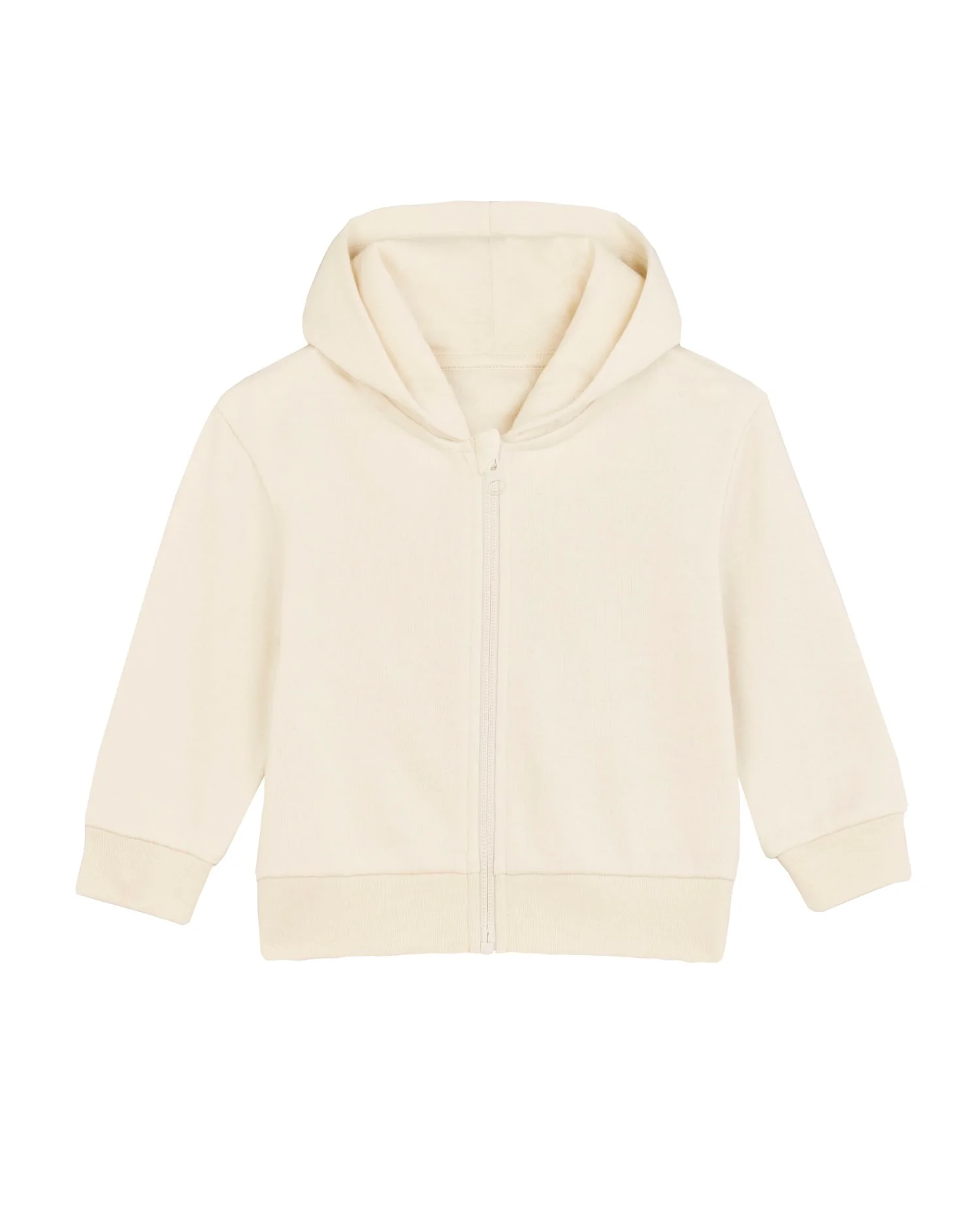 Manches montées Capuche doublée en jersey Bande de propreté en jersey à l’encolure et à la fermeture éclair Fermeture éclair inversée avec protège-menton et sous patte de protection Empiècement « demi lune » en tissus principal à l’encolure dos Finition bord côte 1/1 aux poignets et bas du sweatshirt