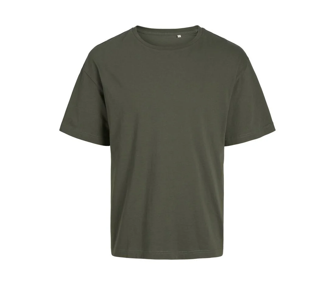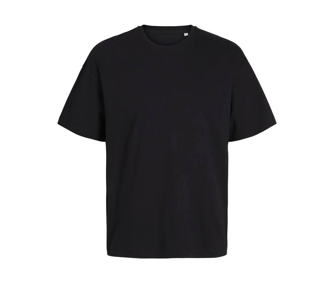 Coupe avec épaules tombantes loose fit. Tee-shirt sans étiquette au col pour le re-branding
