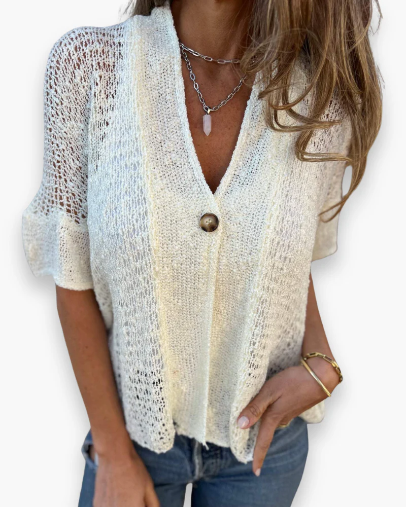 Ce top en maille légère est la pièce idéale pour les journées ensoleillées où confort et style vont de pair. Facile à assortir et agréable à porter, il apporte une touche chic à vos tenues décontractées. Son tombé fluide et sa texture ajourée en font un incontournable du dressing estival.