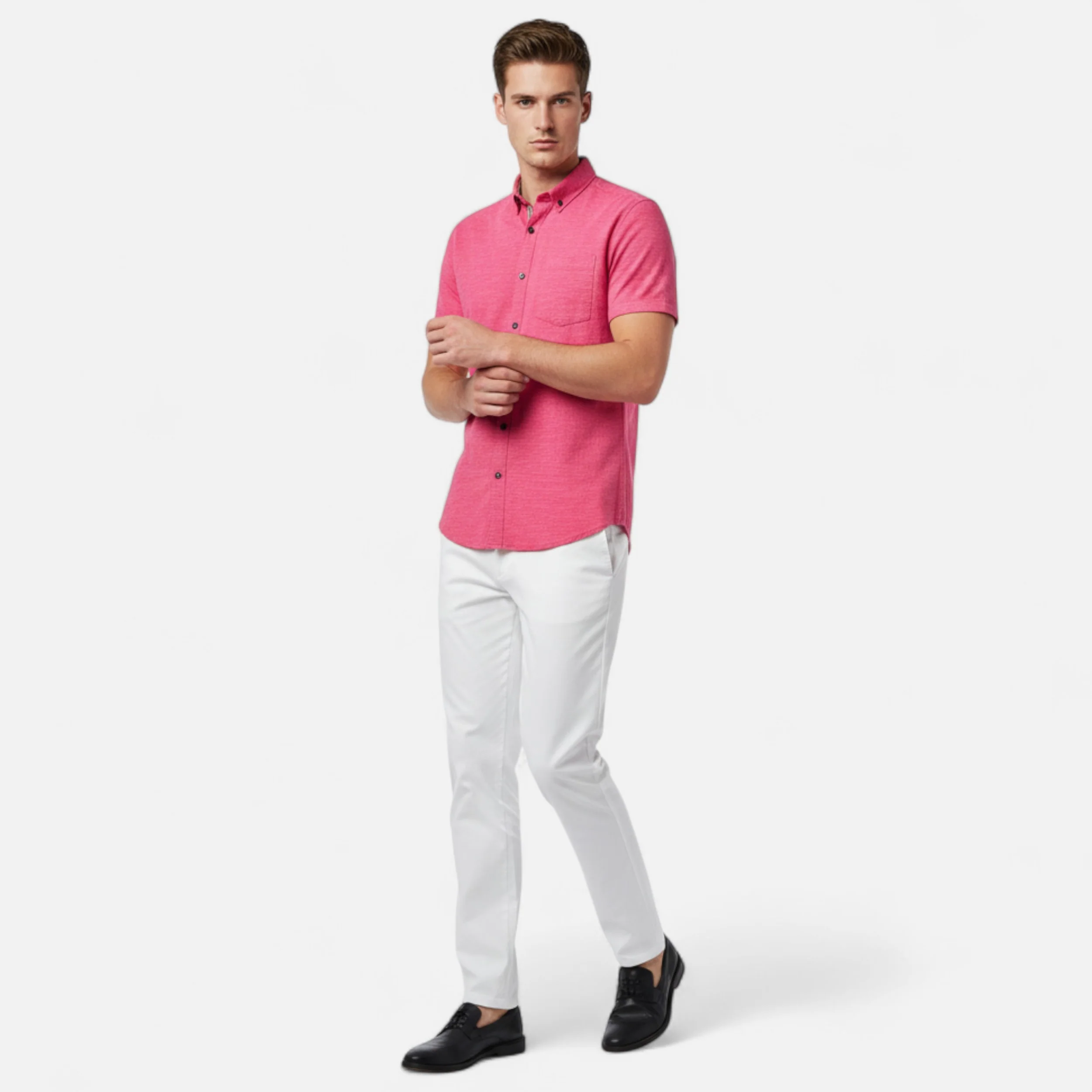 La chemise homme à manches courtes en mélange de lin Velqlo est conçue pour offrir confort par temps chaud et allure intemporelle. Son design boutonné et ses poches poitrine ajoutent une touche classique, tandis que son tissu léger garantit une respirabilité agréable tout au long de la journée.