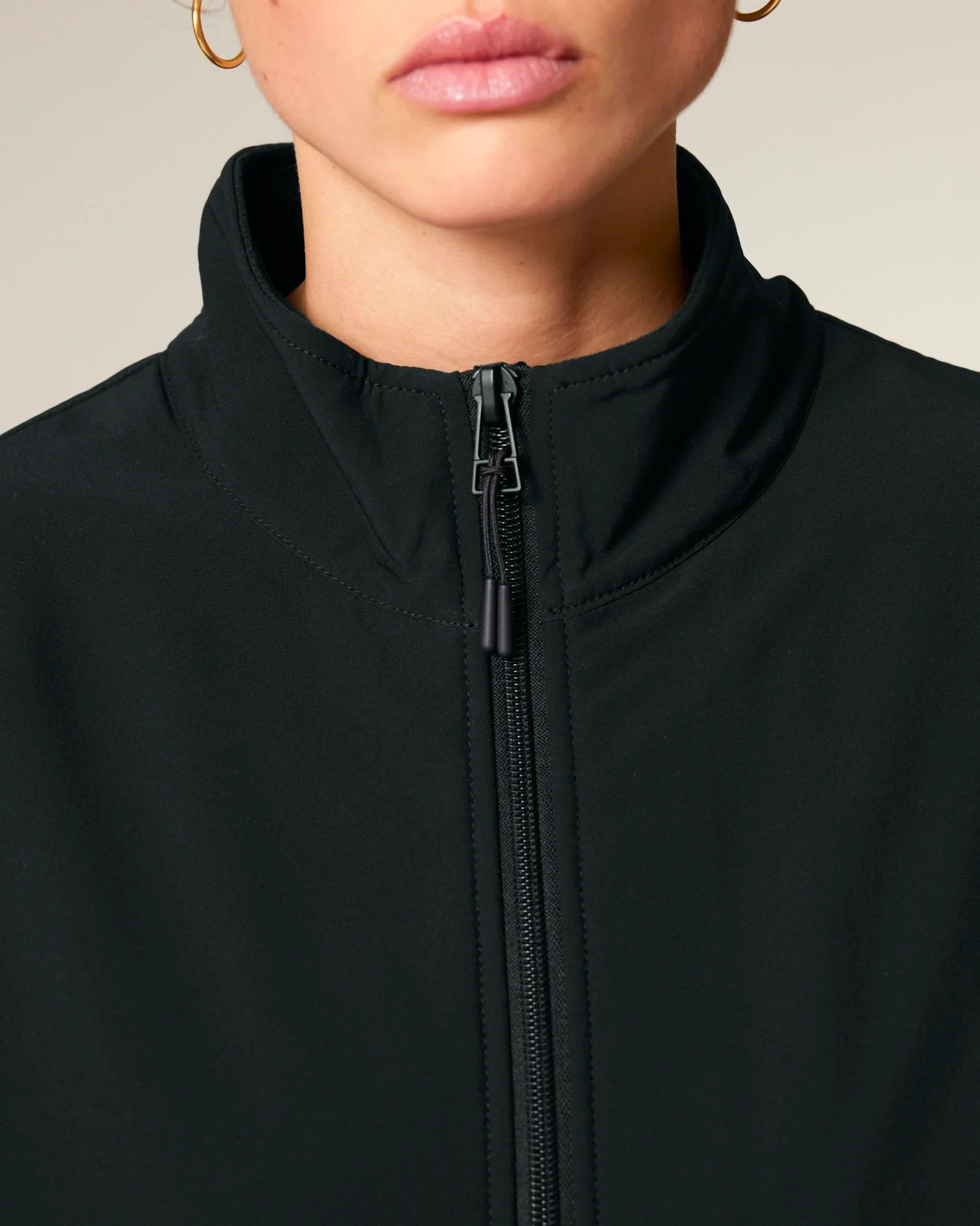 Tissu softshell contrastant au niveau de l’empiècement et du col extérieur