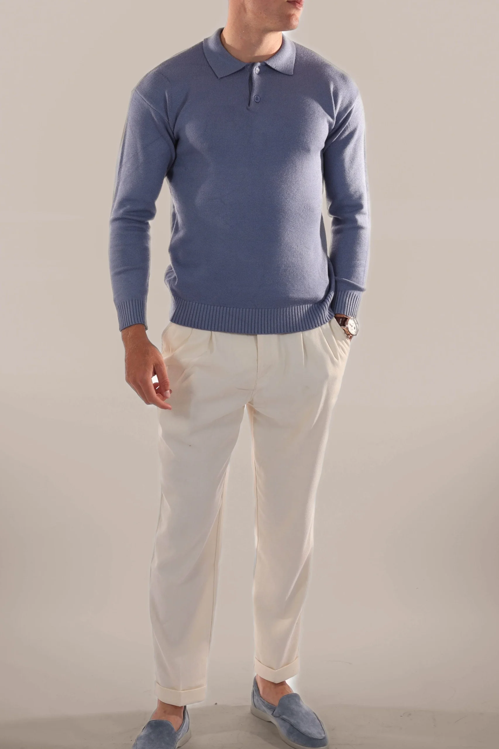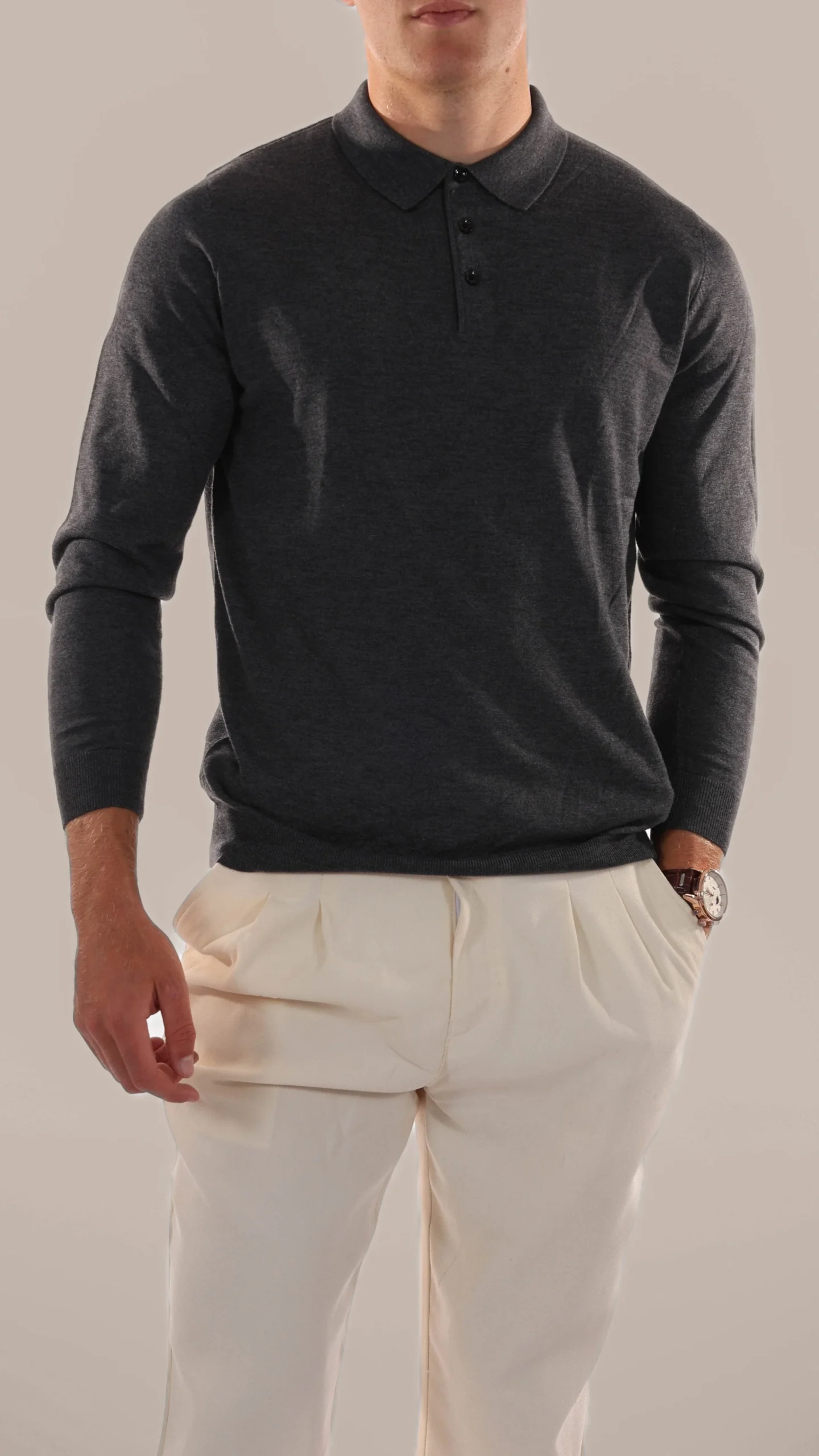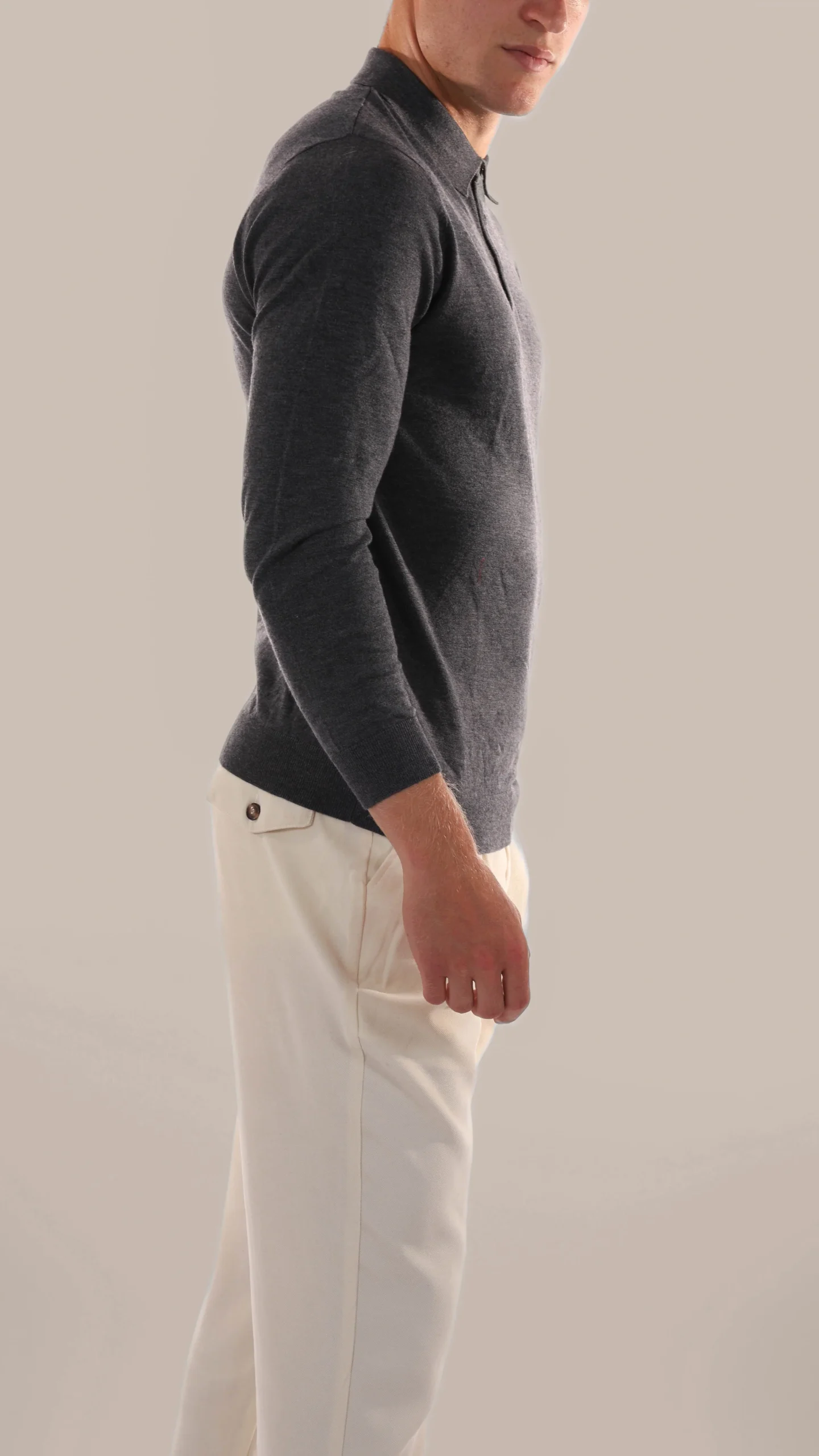 Coupe sur mesure pour un modèle mince mais confortable, avec des manches longues pour plus de polyvalence
