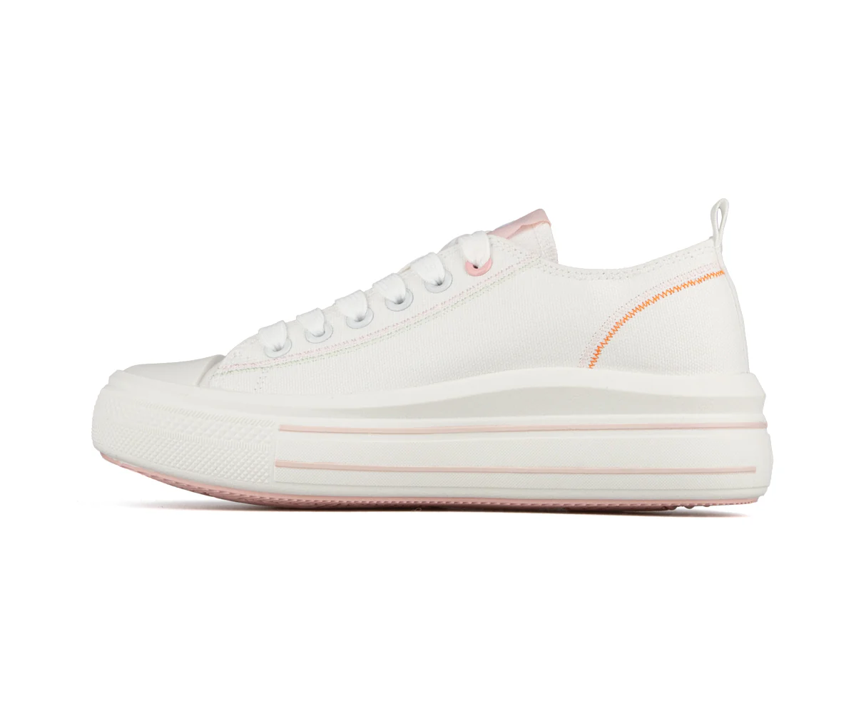 Ces chaussures mode pour filles juniors sont conçues pour un usage quotidien et casual. La tige en canvas léger assure respirabilité et confort, tandis que la semelle en PVC offre adhérence et durabilité lors des promenades et des activités scolaires. La fermeture lacée permet un ajustement sécuritaire.
