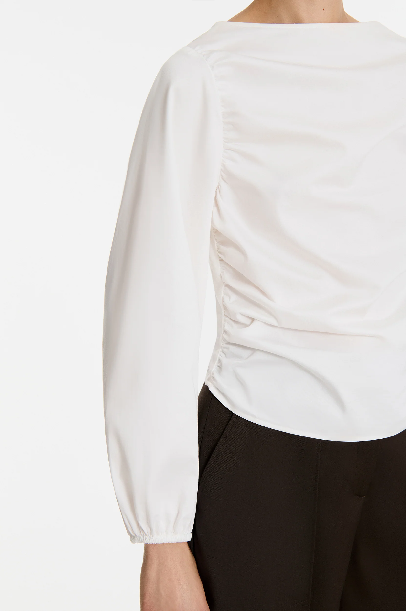- Top en coton doté de manches bouffantes et d’un léger volume sur le devant pour une silhouette structurée