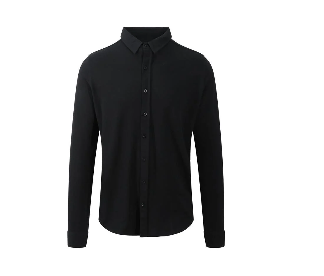 Coupe moderne. Maille micro piquée. Ourlet arrondi. Double couture sur les côtés, les manches et les poignets. Couture simple contrastée au col et sur la patte de boutonnage. 2 boutons aux poignets. Col moderne étroit. Empiècement au niveau des épaules dans le dos. Pinces dans le dos. Sans poche.