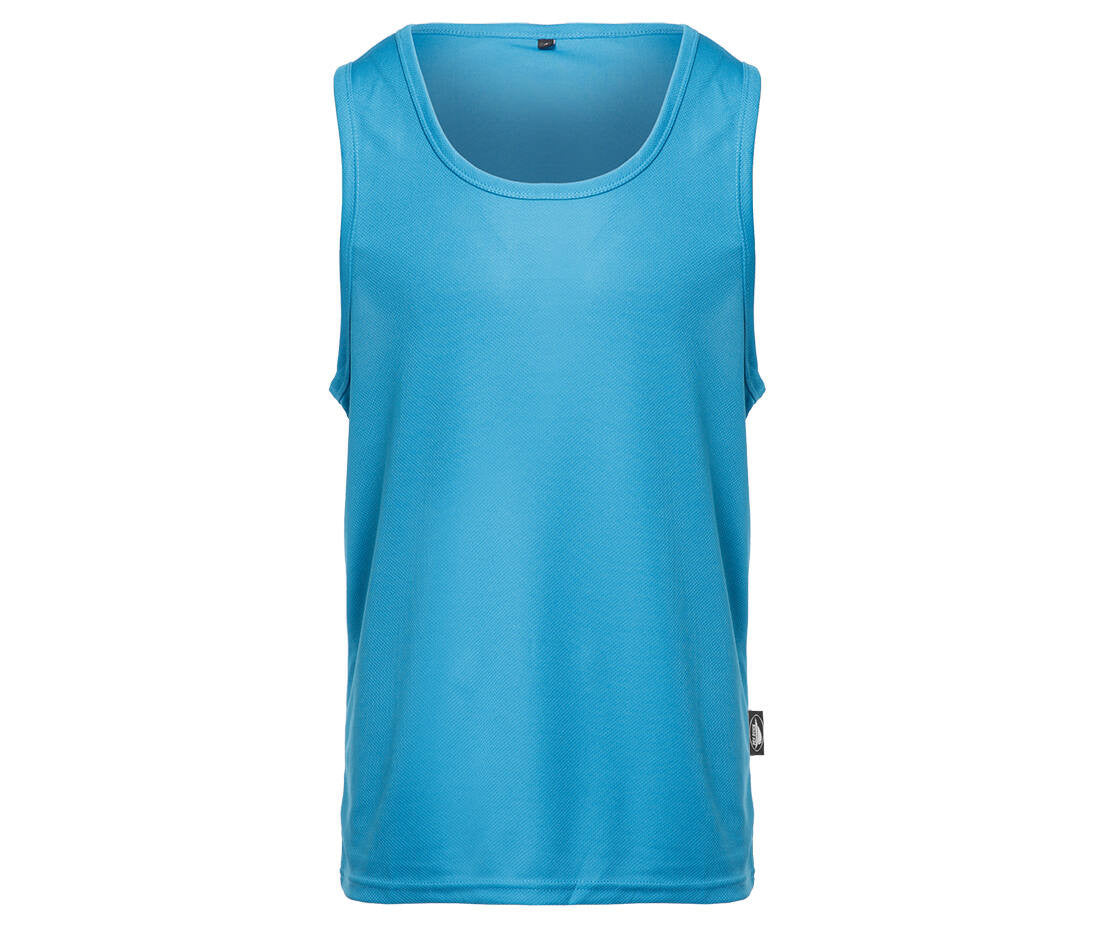 Débardeur de sport homme. Étiquette imprimée pour plus de confort. Léger et respirant. Coupe sportive. Col et emmanchures de la même matière que le débardeur. Disponible en 9 couleurs.