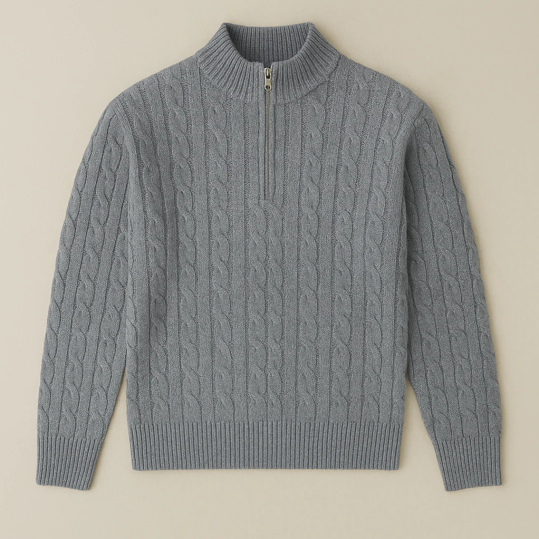 Ce pull pour homme à demi-zip s’inspire des tricots traditionnels tout en étant modernisé pour une coupe simple et élégante. La texture en tricot à câbles ajoute de la profondeur sans paraître trop formelle, tandis que le col zippé permet de l’associer facilement à diverses tenues. Que vous le portiez par-dessus une chemise ou seul, il offre un équilibre parfait entre structure et confort.