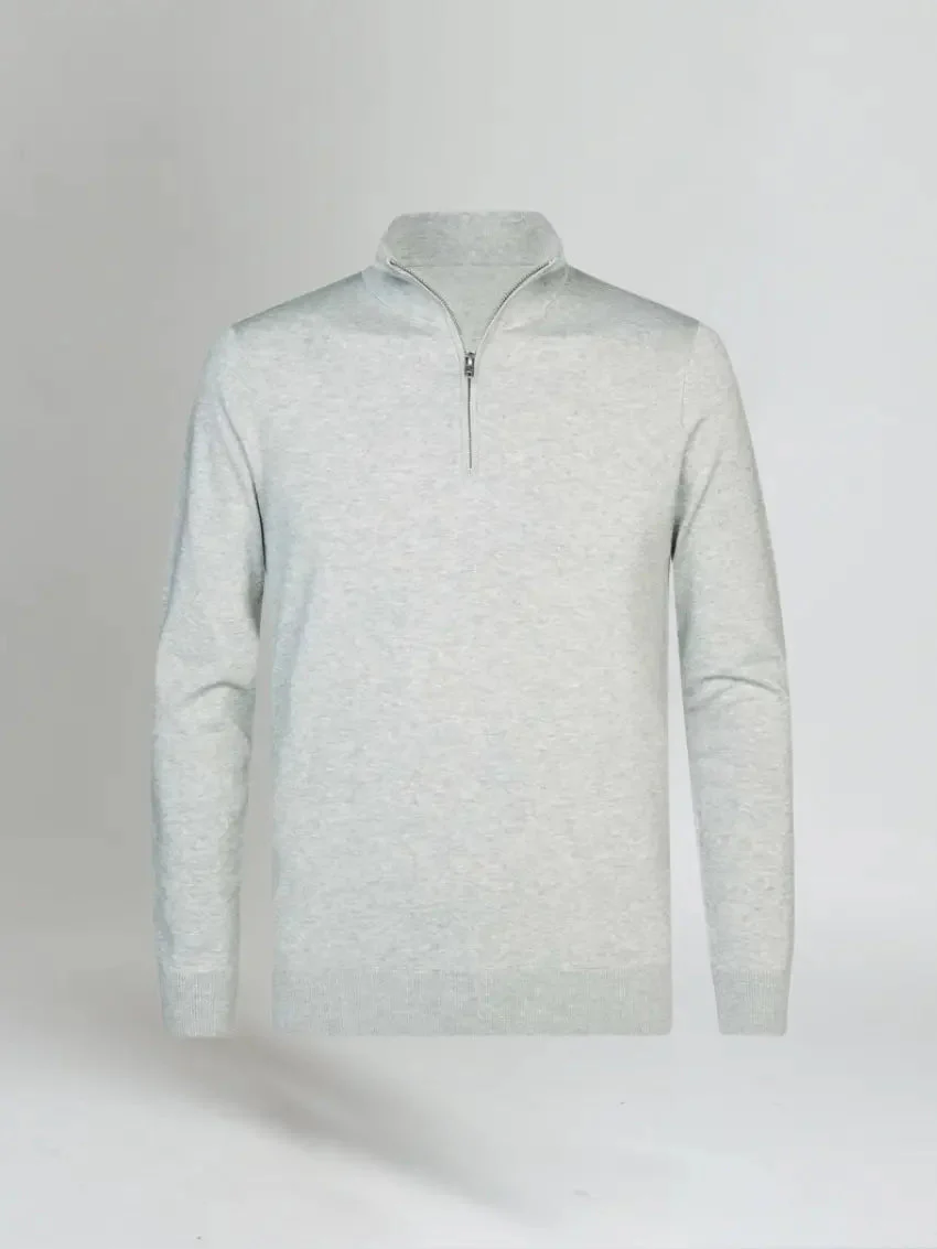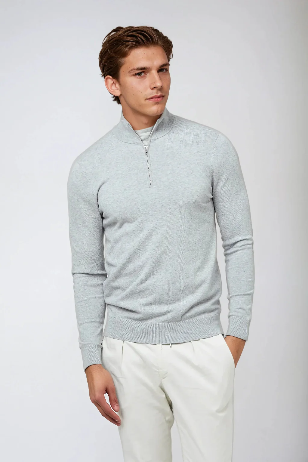 Le Essential Half Zip Sweater en gris clair allie élégance minimaliste et confort quotidien. Ce vêtement polyvalent est conçu pour les hommes qui apprécient une esthétique épurée et des matériaux de haute qualité, ce qui le rend adapté à toutes les occasions. Le mélange de coton doux et respirant assure un confort durable, tandis que la fermeture éclair partielle ajoute une touche moderne et pratique. Avec sa coupe décontractée, ce pull offre une silhouette relaxée tout en restant soignée, faisant de lui un élément indispensable dans votre garde-robe.