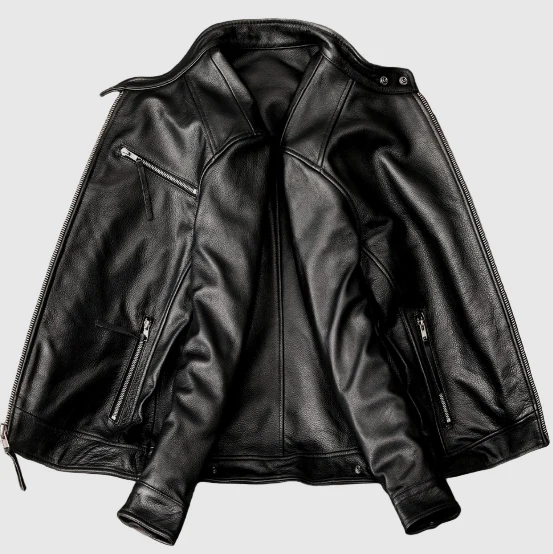Confectionné en cuir de vachette 100 % véritable, il offre une allure masculine affirmée, une texture luxueuse et une durabilité exceptionnelle. Sa coupe ajustée et ses finitions métalliques ajoutent une touche urbaine et moderne à votre style.