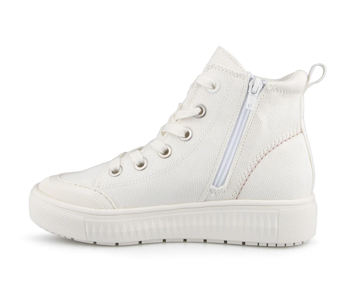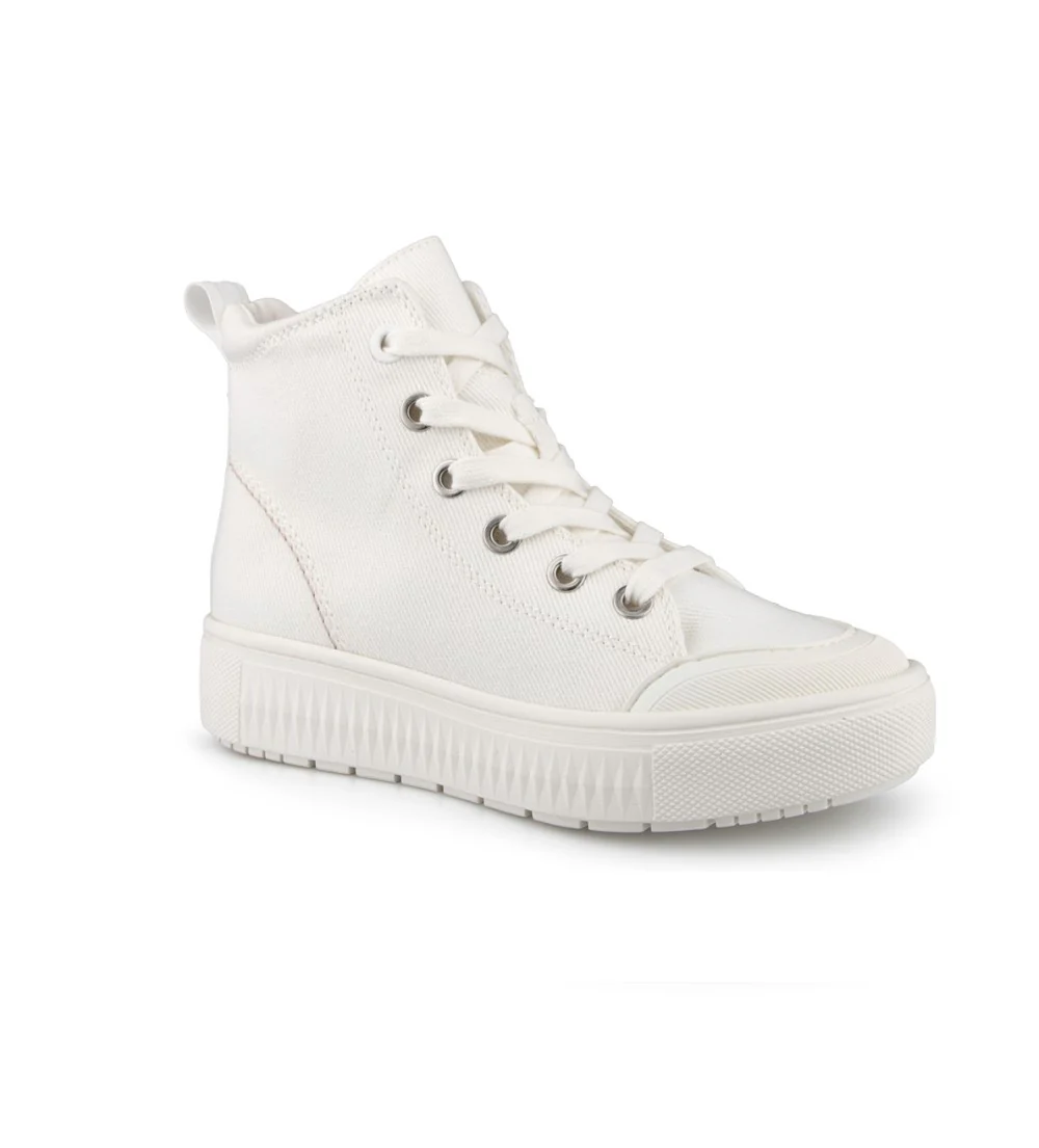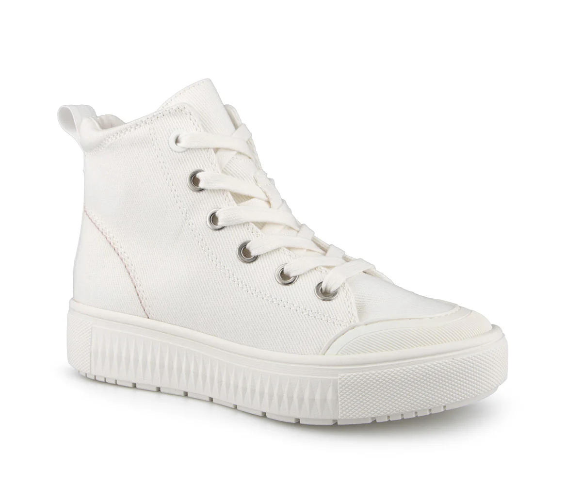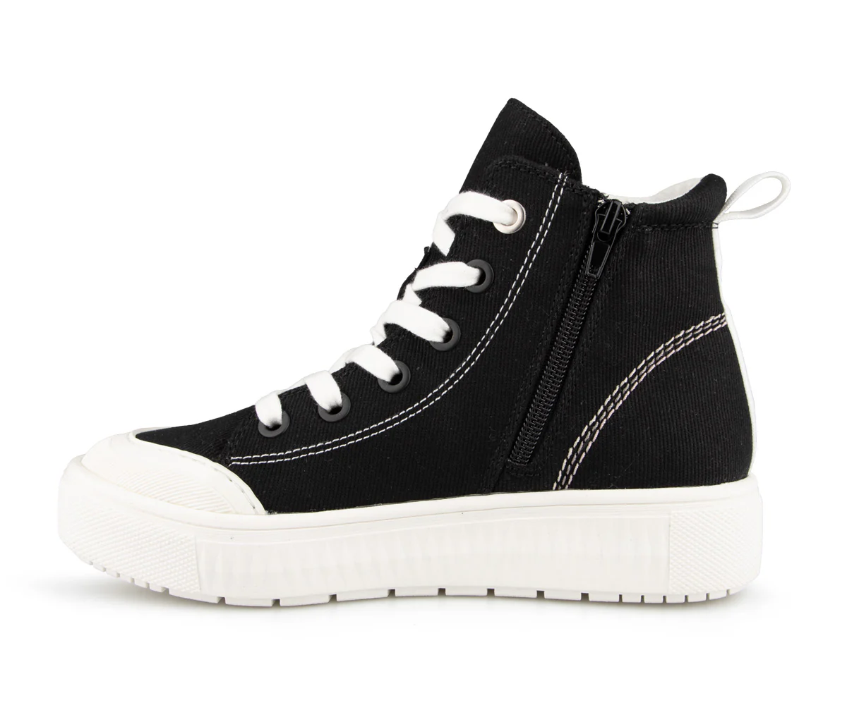 Chaussures mode à plateforme pour femmes Alberto en canvas avec fermeture éclair intérieure. Facile à enfiler grâce à la languette arrière. Disponible en deux couleurs (noir et blanc).