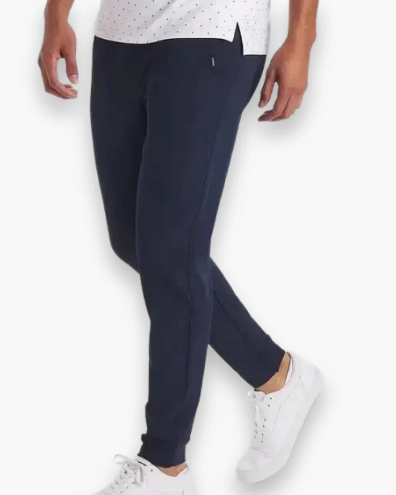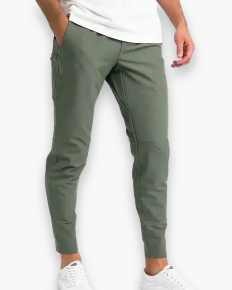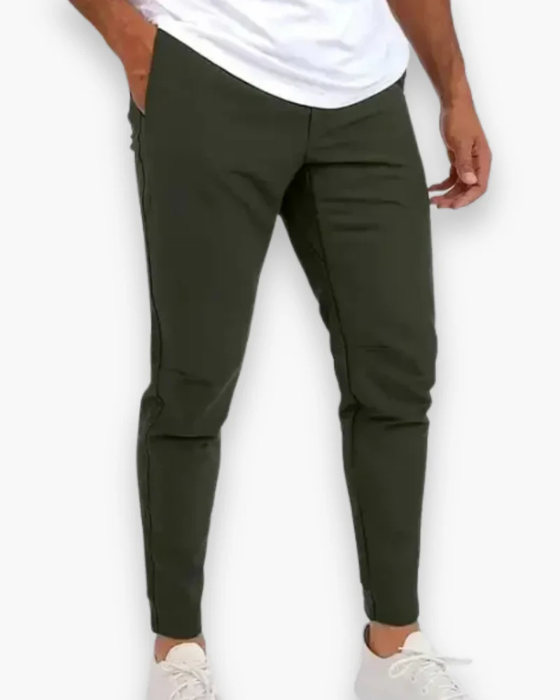 Adoptez un look moderne sans compromis sur le confort avec ce pantalon fuselé extensible pour homme. Sa coupe ajustée et son tissu technique offrent une silhouette dynamique et une liberté de mouvement parfaite pour vos journées actives ou vos tenues soignées.