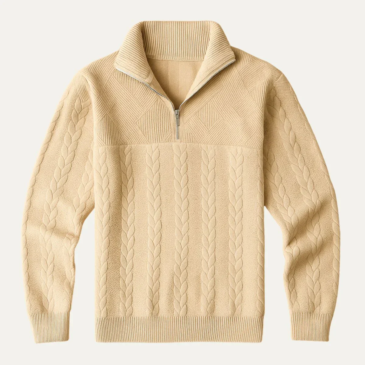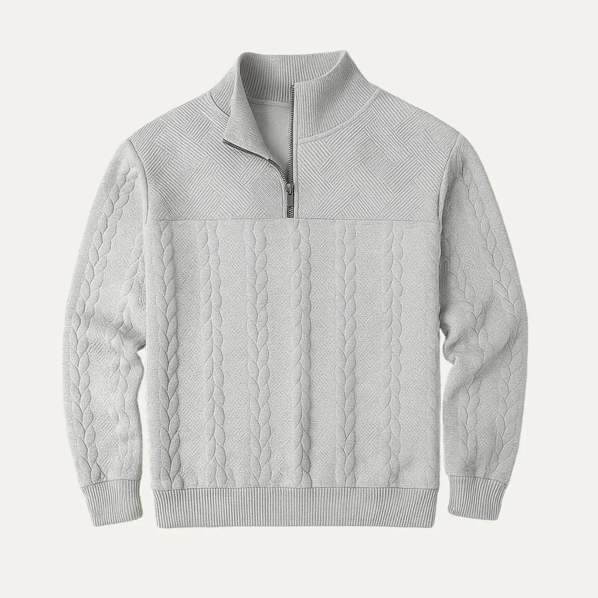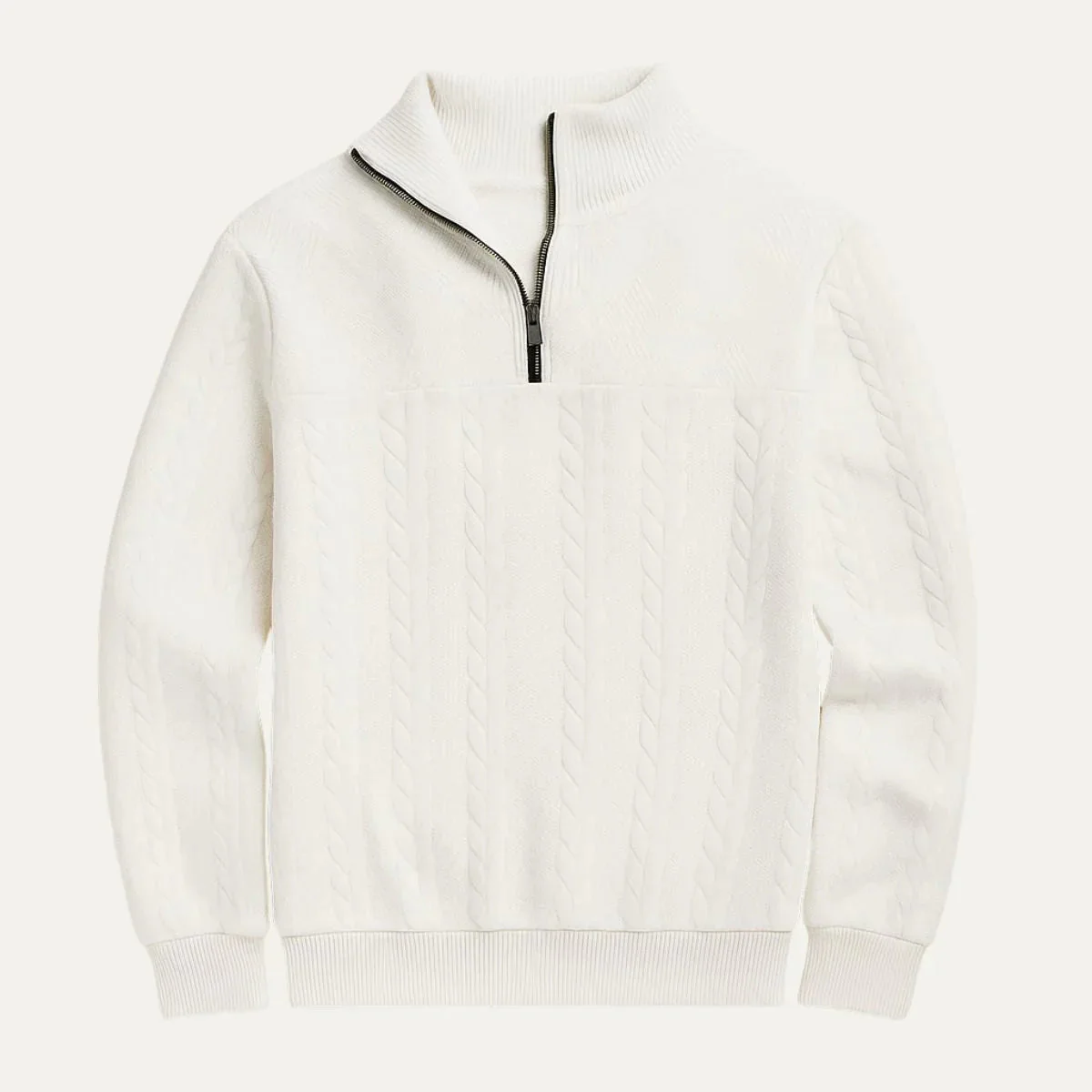 Ce pull en laine à câble pour homme avec demi-fermeture éclair est le mélange parfait de raffinement et de confort, conçu pour ceux qui apprécient la simplicité sans sacrifier l’élégance. Fabriqué à 100 % en laine mérinos, il offre une douceur et une respirabilité inégalées, vous permettant de rester au chaud sans vous sentir encombré. Sa coupe ajustée flatte votre silhouette, ce qui en fait un choix idéal tant pour les sorties décontractées que pour les occasions semi-formelles. Que vous le combiniez avec un chino pour un look raffiné ou que vous le portiez par-dessus une chemise pour une ambiance plus décontractée, ce pull est votre vêtement ultime pour une élégance sans effort. Zippez-le et sortez avec confiance, sachant que vous êtes au meilleur de votre forme.