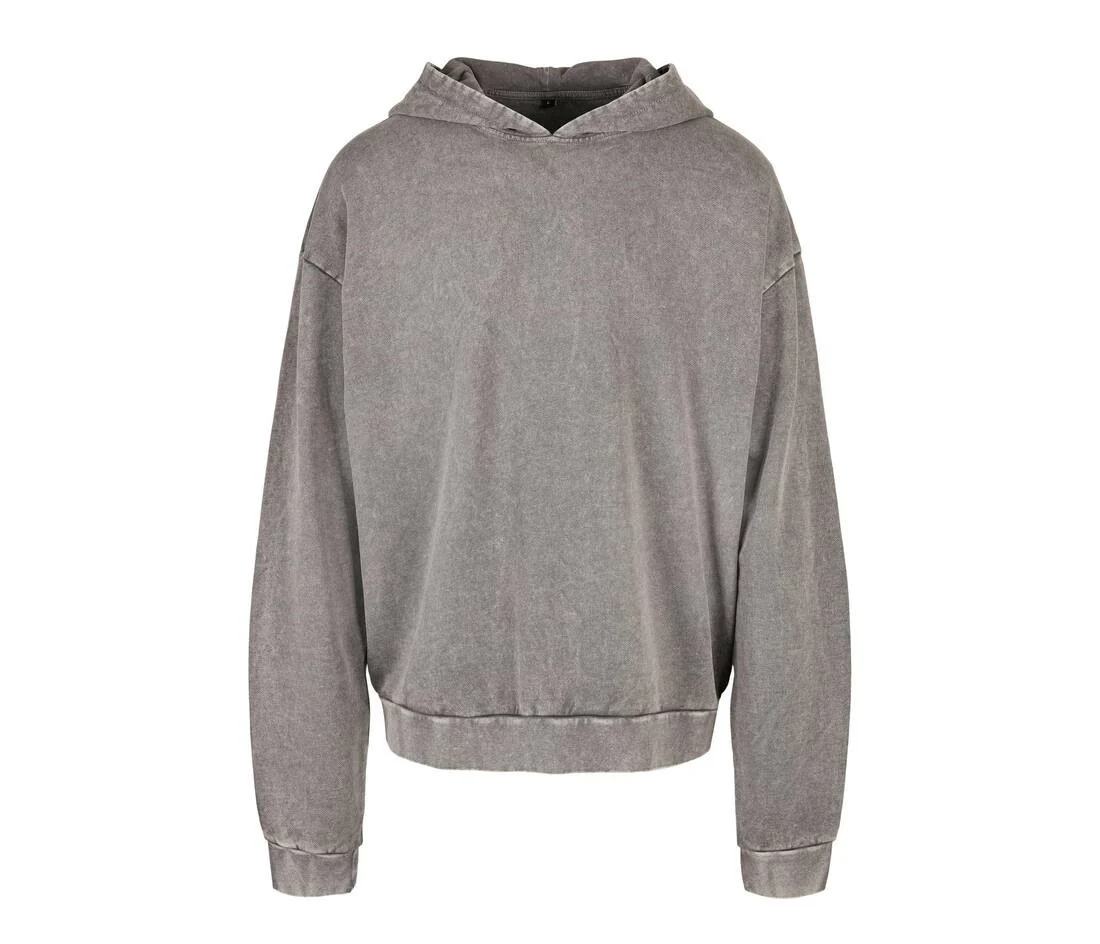 Décoloré à l’acide. Épaules tombantes. Capuche sans cordon de serrage. Couture divisant la capuche du sweat. Coupe ample. Poignets et taille en bord côte. French Terry.