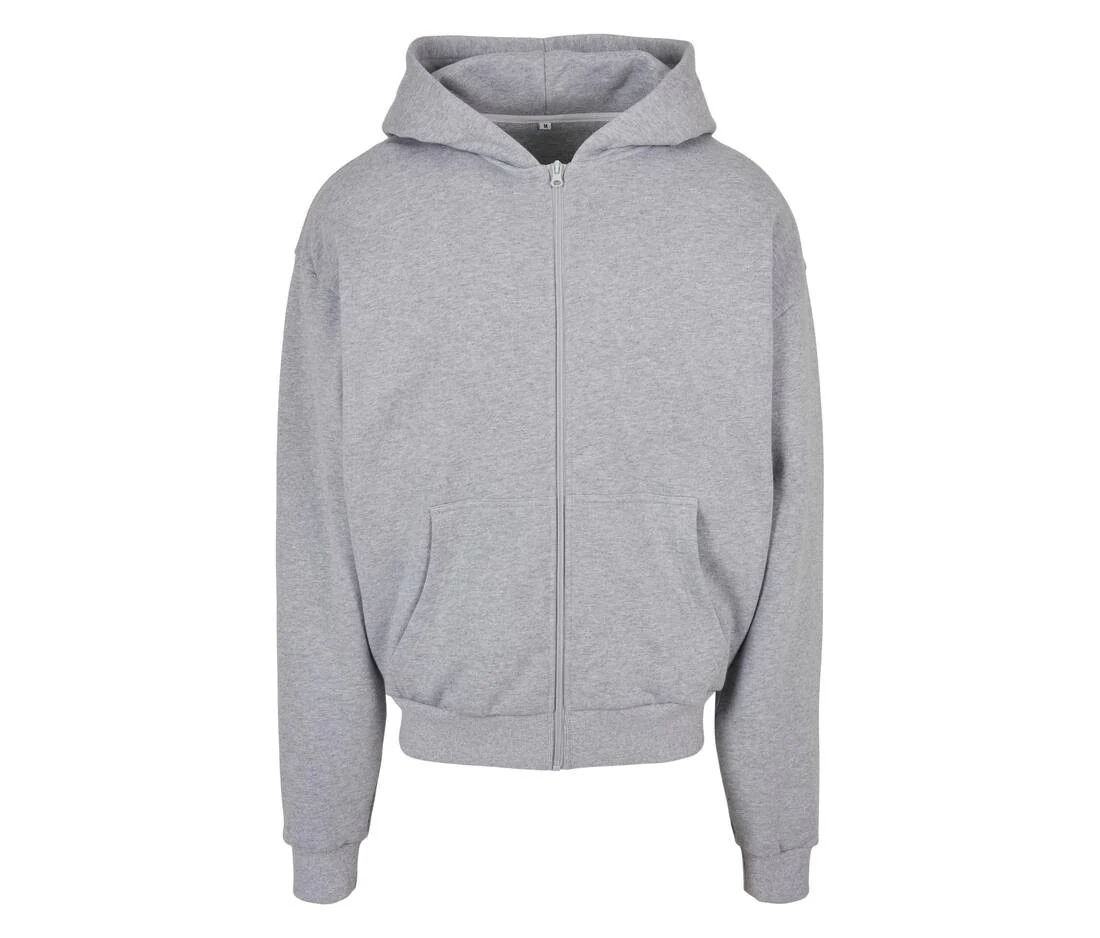 Fermeture grand zip métallique. Bords côte épais aux poignets et à la taille. Capuche classique mais sans cordon. Poches kangourou. Coupe large. Intérieur French Terry.