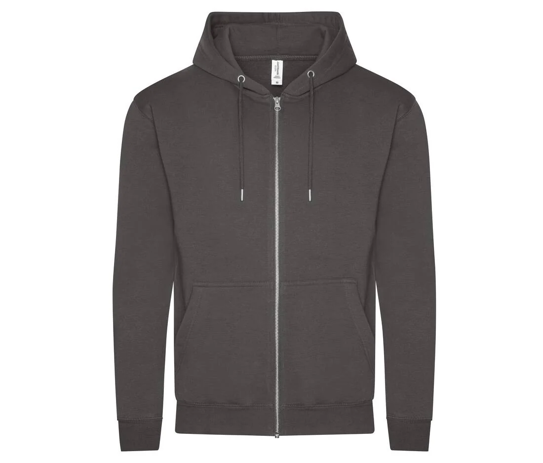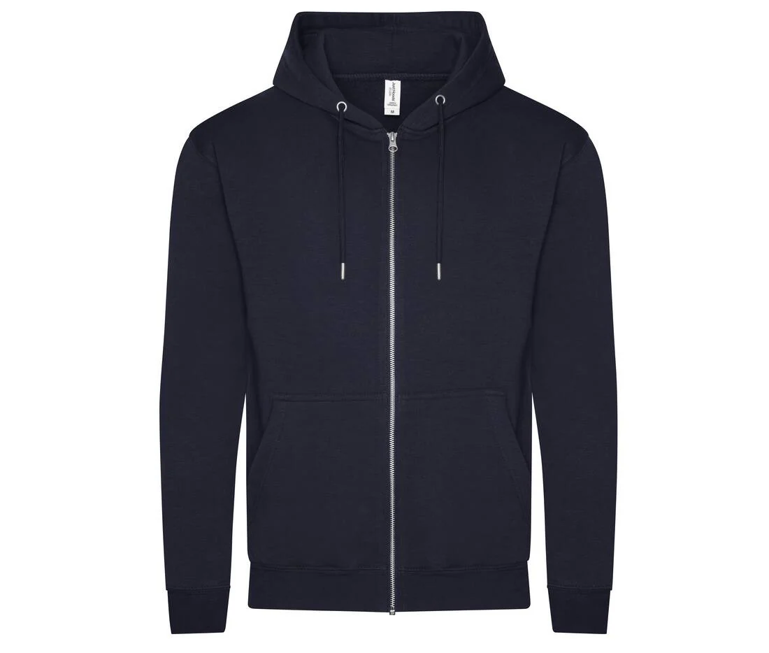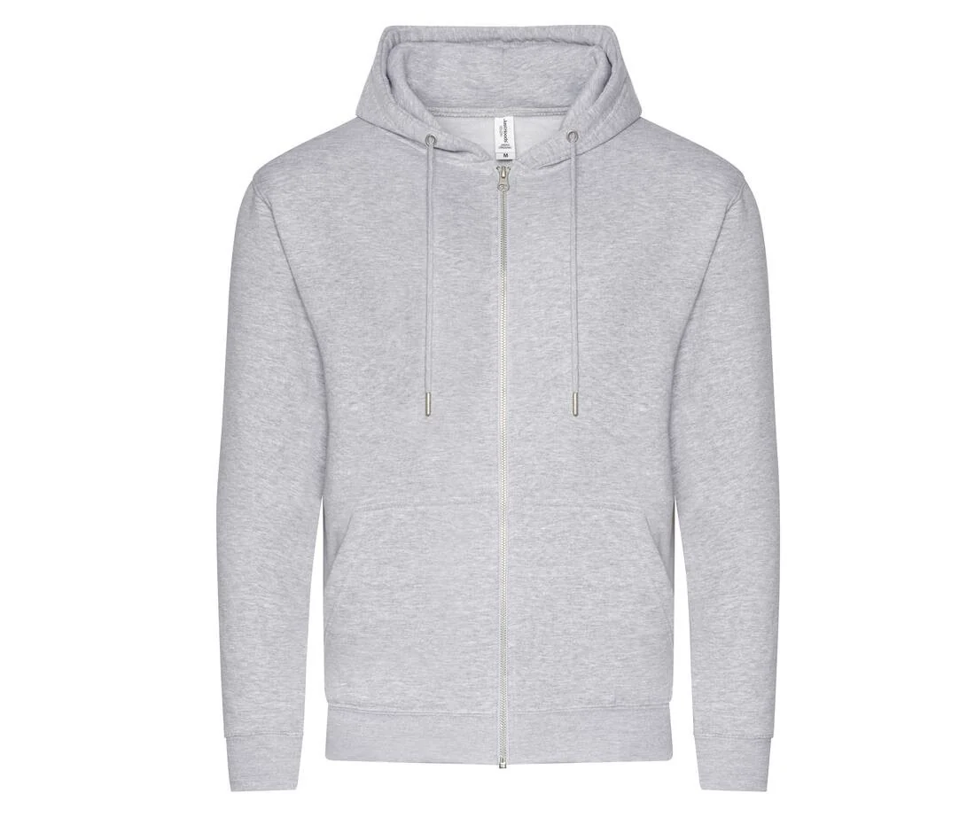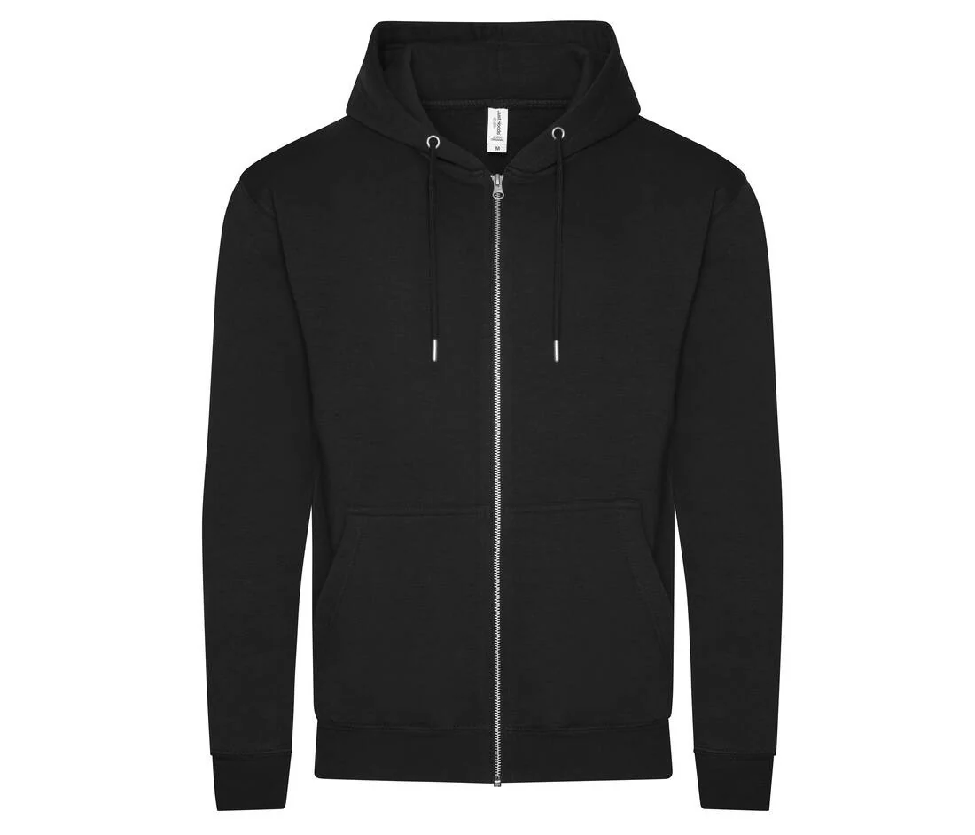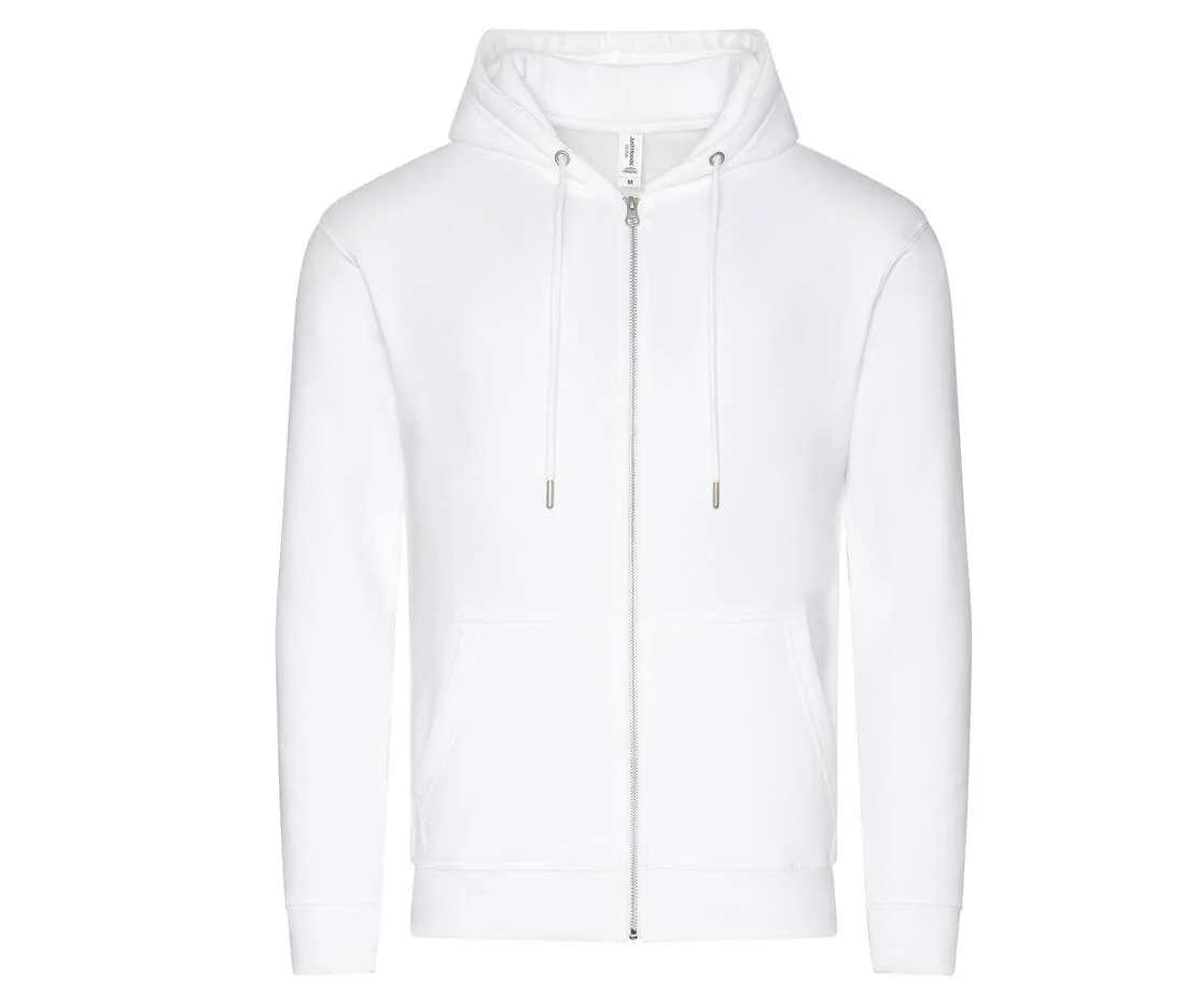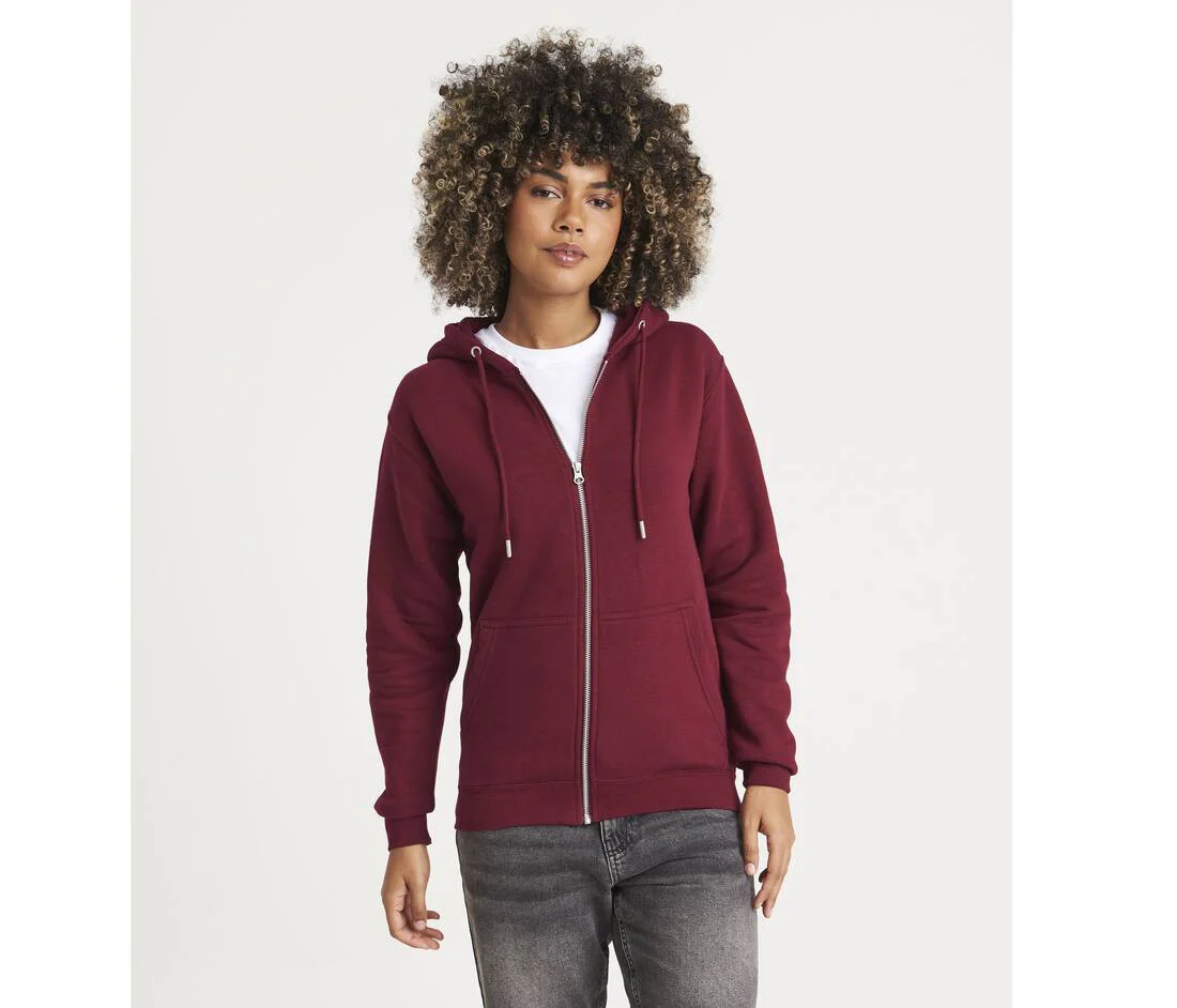Sweat-shirt zippé à capuche. Fermeture Éclair YKK métallique couverte. Double couture. Capuche doublée avec cordons de serrage ton sur ton. Poches kangourou. Intérieur brossé. Étiquette détachable. Taille et poignets en bords côte. Surface douce pour un rendu d’impression idéal. Usine et fil certifiés.