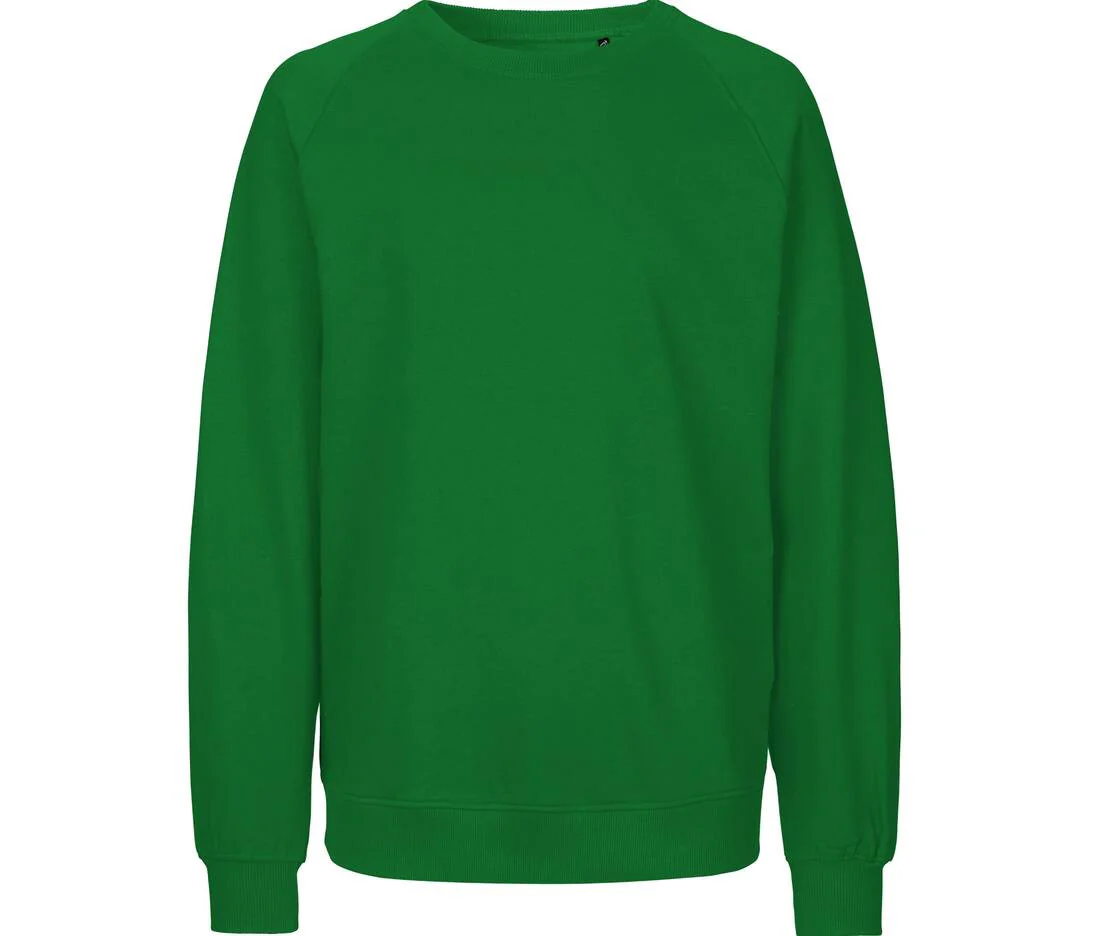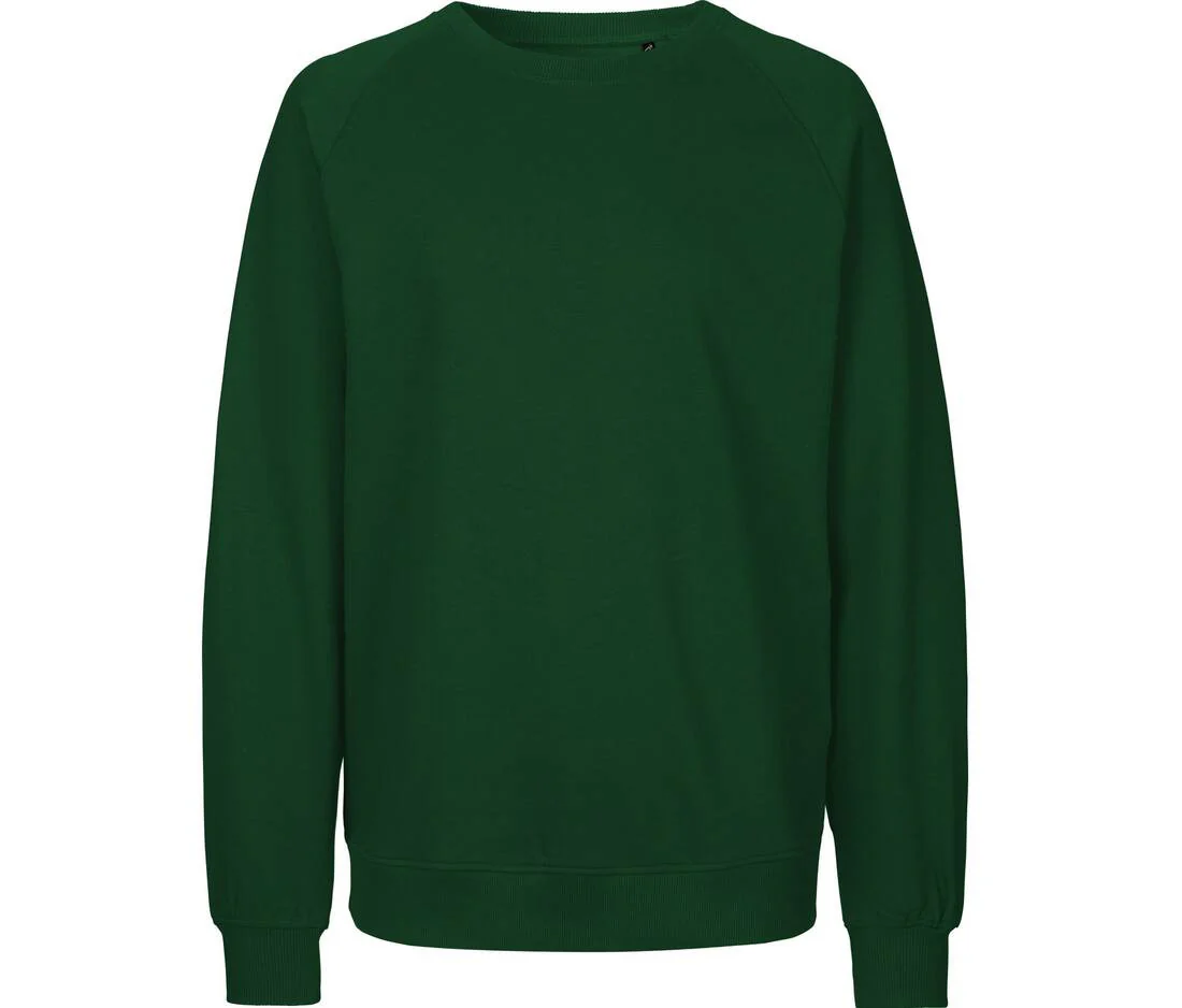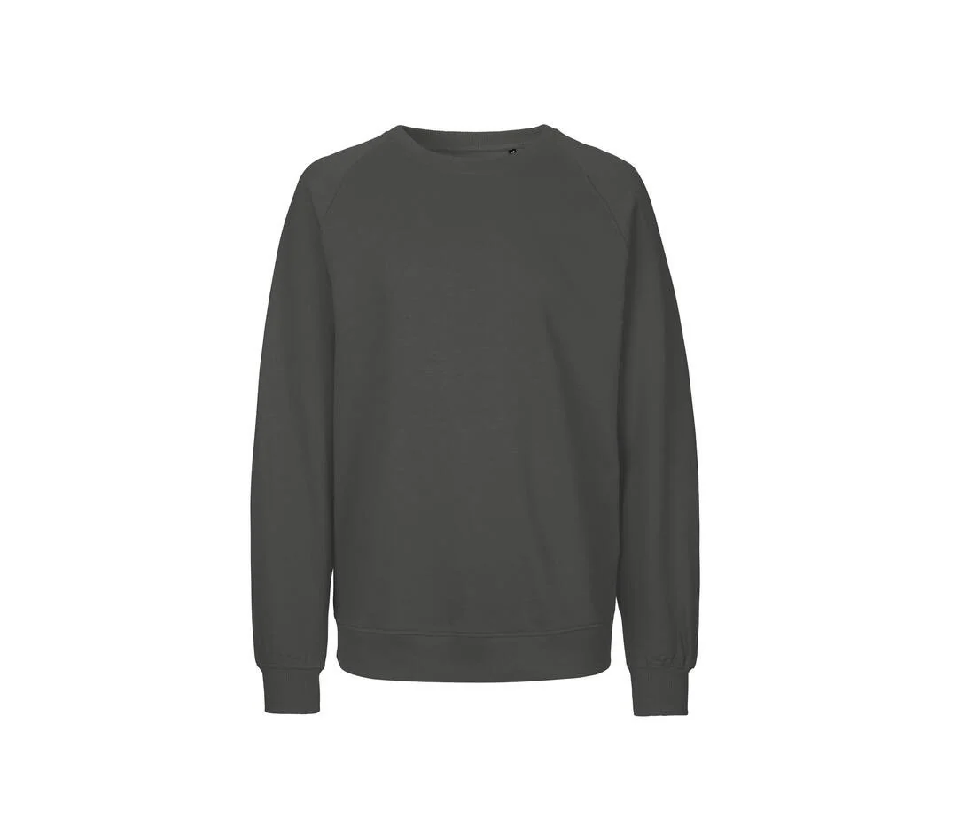 Sweat en coton bio brossé. Intérieur brossé. Col ras du cou. Manches raglan. Bords côte à la tailles et aux poignets.