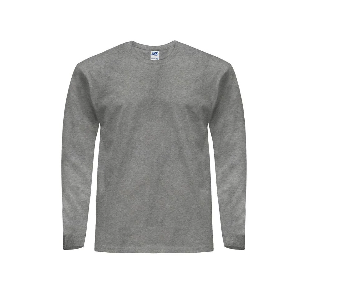 Tee-shirt manches longues. Poignets et col en bords côte. Coupe tubulaire. Double surpiqûre au cou, épaules et taille. Bande de propreté au col d’épaule à épaule.