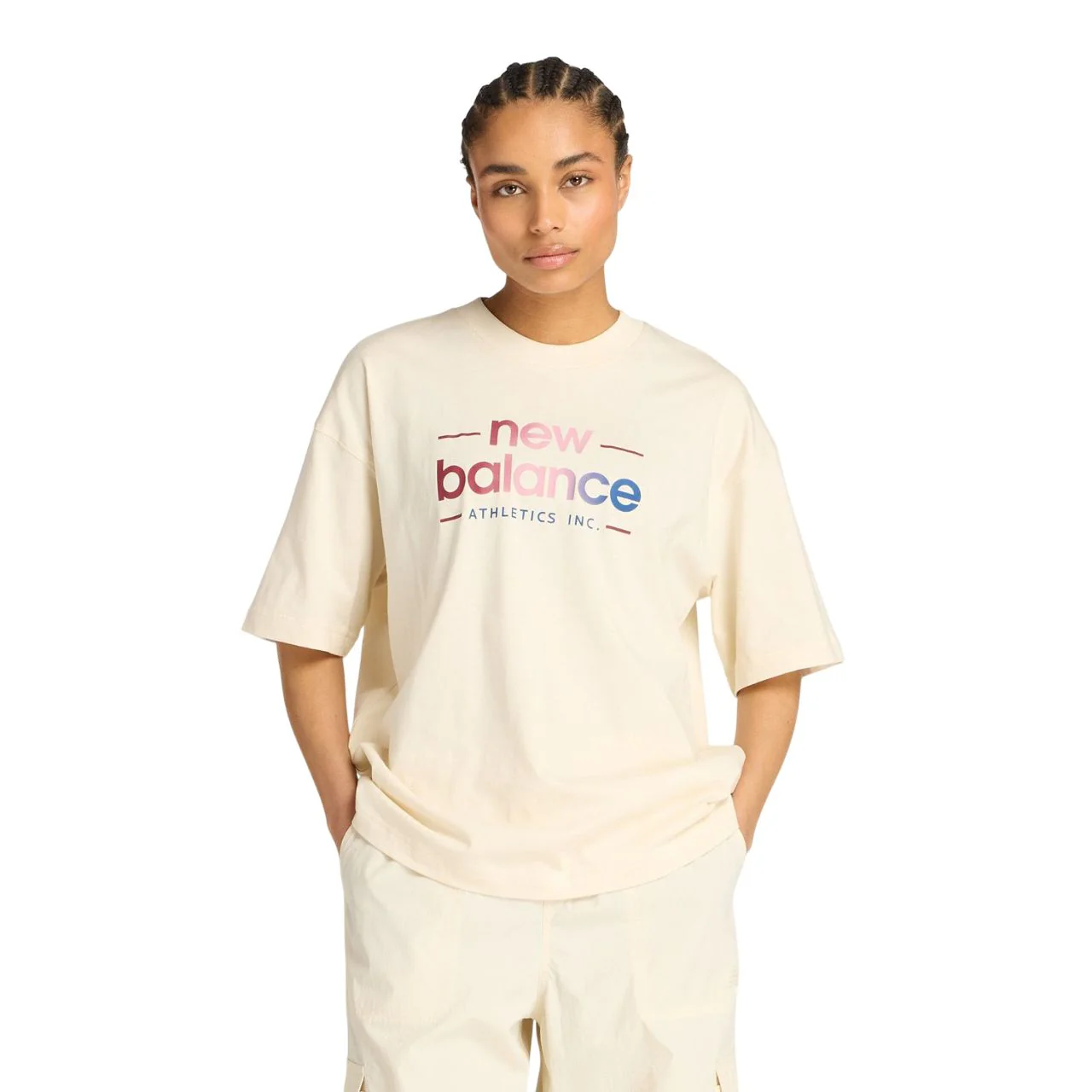 Confortable et moderne, ce t-shirt New Balance pour femmes mise sur une coupe oversize décontractée et un tissu en coton doux et respirant. Parfait pour la vie quotidienne, il se porte aussi bien à la maison qu’en déplacement ou après l’entraînement. Son grand logo graphique dégradé ajoute une touche dynamique qui s’agence facilement à un legging, un short ou un jean. Léger et fluide, il accompagne tous les mouvements avec aisance.