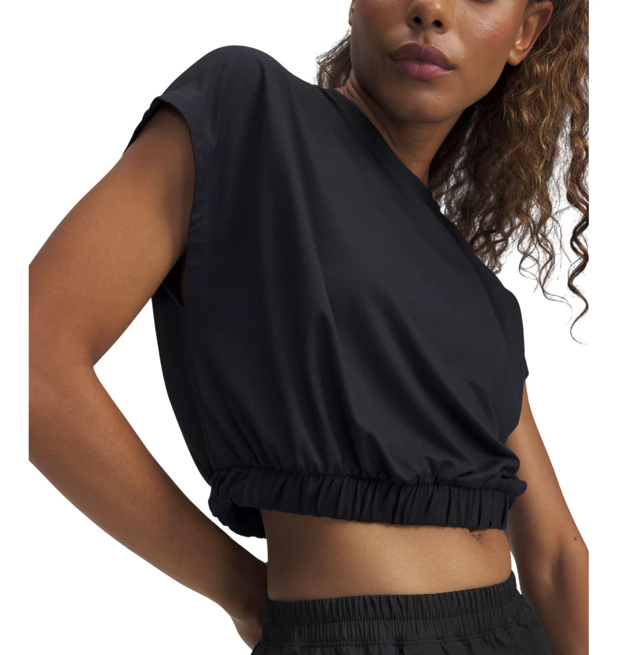Chandail court pour femmes Under Armour. Conçu en tissu léger et respirant, il offre un confort optimal au quotidien comme à l’entraînement. Sa taille élastique crée un effet blousant moderne et ses manches courtes assurent une grande liberté de mouvement.