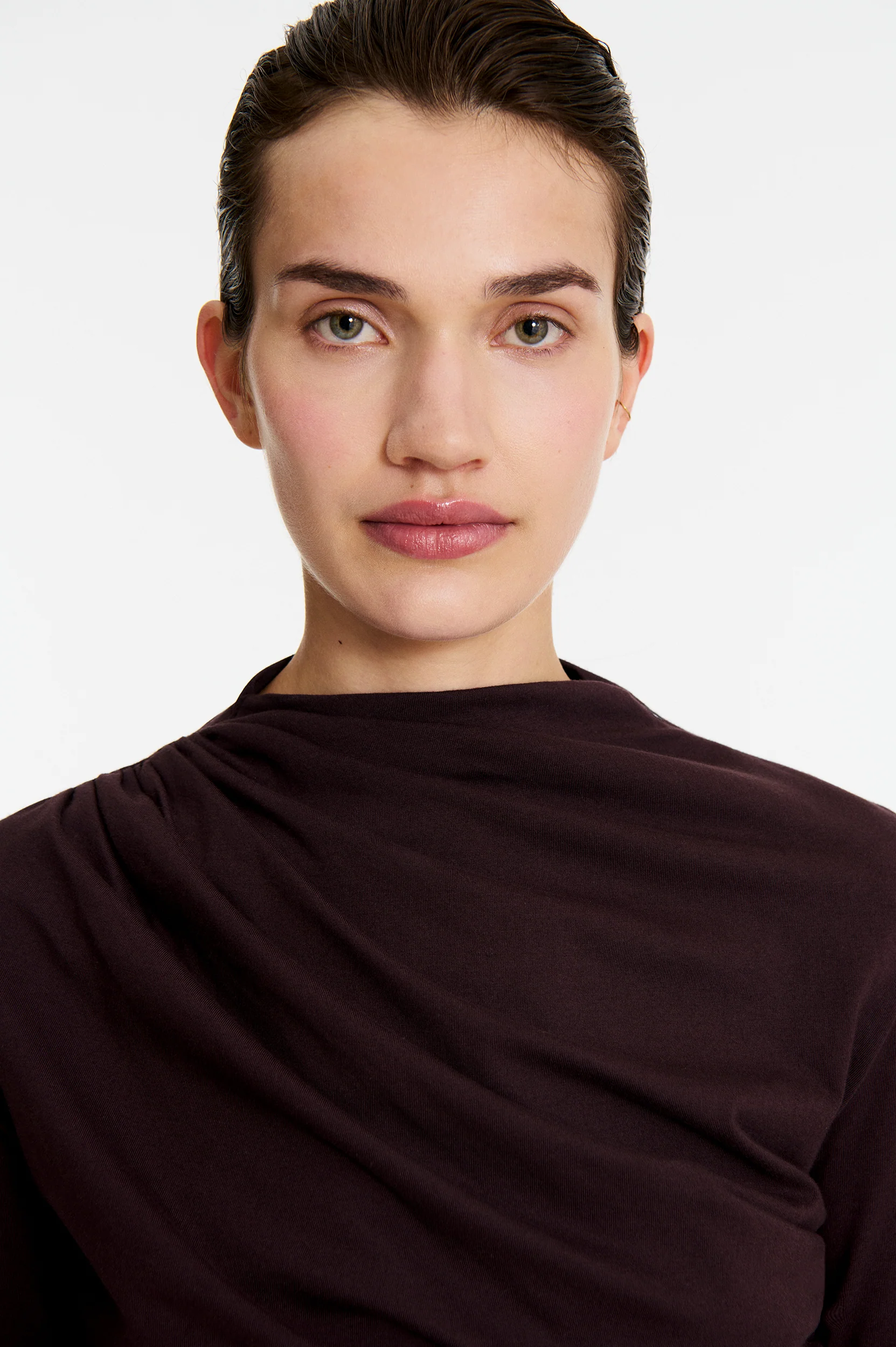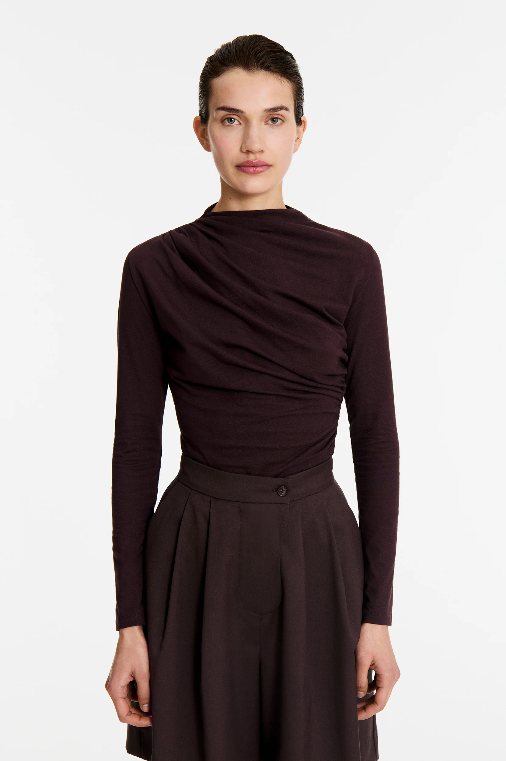 - Fronces diagonales asymétriques créant un effet drapé élégant et structurant