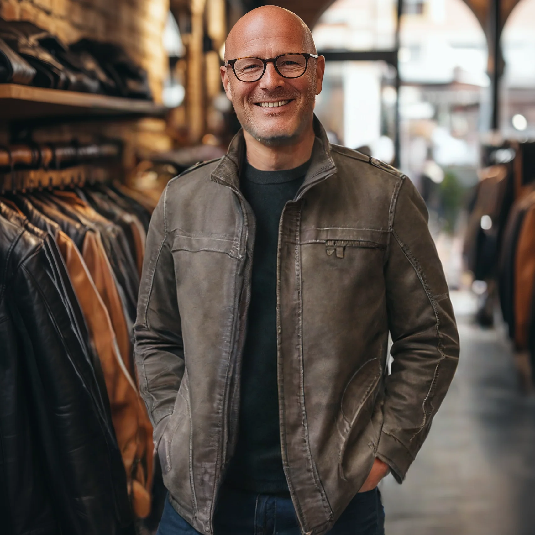 Découvrez notre veste en cuir « Urban Nomad » : notre pièce unique en son genre qui fait tourner les têtes.